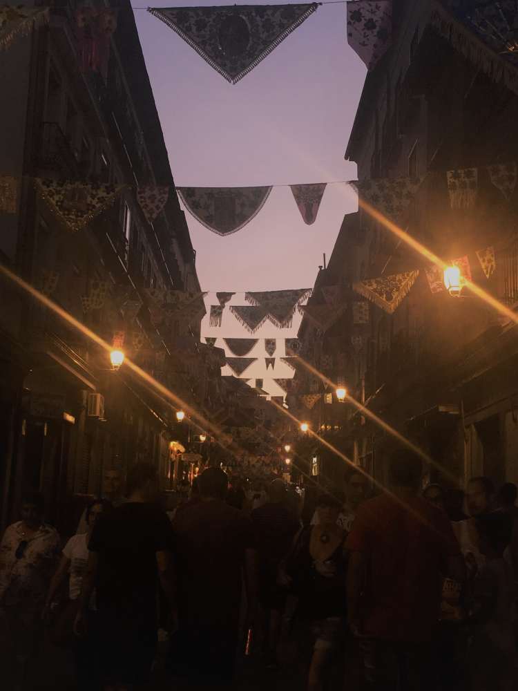 As soon as I step out of the metro station, all my doubts are gone. The colorful buildings, the summer heat, the trees lining the streets. It’s love at first sight. I reach my Airbnb without getting lost and meet my host on the 3rd floor of one of the beautiful buildings. We speak Spanish (her more than me) and I immediately feel at home. She asks me if what I am planning to do and I tell her about all the sights I want to visit and food I want to eat. She asks if I know about the “Fiestas de Agosto”. I say no and she quickly explains the on-going street festival to me and tells me that her favorite place to experience it is in the barrio “La Latina”. I make a mental note to go there and leave for my first shopping spree.