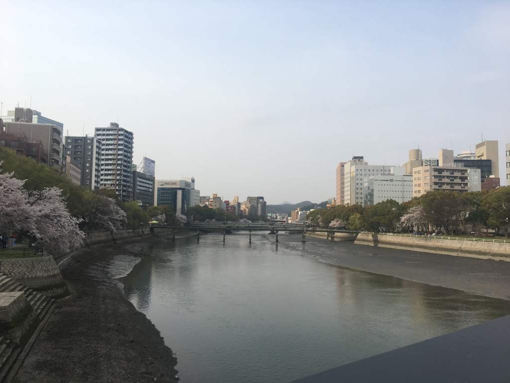 Tina and I spend the last 2 nights of our 2-week trip to Japan in Hiroshima. We arrive with the Shinkansen from Osaka around noon and check into our hotel next to the main station. Our room is not ready yet, but we just want to leave our luggage there for the day anyway. I take a small city guide from the stand next to the reception and we walk back to the station. Our first ride on the pretty streetcars takes us to the “A-Bomb Dome”.