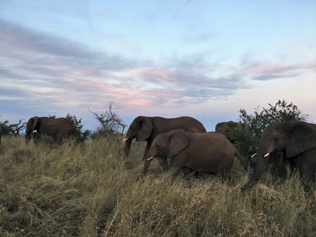 Once we arrive on the highest hill around, we meet up with the 4 other Jeeps and the staff of the reserve quickly set up a table with biltong (dried meat), different drinks and finally a bottle of Amarula. Now everybody is talking at the same time. Our group tells everyone about the elephant encounter, another Jeep followed a lion’s tracks and the bride’s parents even saw rhinos. As I am sipping on my glass of Amarula, watching the sun set over the African bush, I am perfectly happy and wish for this moment never to end.