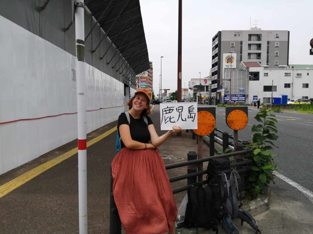 We put out backpacks into the trunk, while one of the lady’s two daughters switches to the front seat to make space for us in the back. The three of them are very interested in learning more about us and our journey. The older daughter asks a lot of questions and is super happy about being able to practice her English. The 20-minute ride flies by and in the parking lot of the mall we say goodbye. A short walk later we arrive at the access road to the expressway and once again set up our sign. This time we don’t have to be as patient. Only a little while later a nice lady stops and tells us she couldn’t take us all the way to Kagoshima, but at least a good hour south.