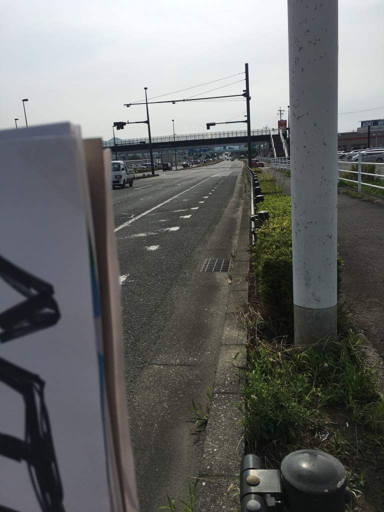 After an interesting night at a Manga Café, we get breakfast at 7/11 and head towards National Route 266, as this is the main road leading out of the city to the southbound expressway E3. Finding the right spot to flag down cars in a bustling city is not as easy as you might expect. You have to consider the direction of traffic, street lights, space for cars to stop and the list goes on. We finally find a good spot at the main road, but close to a narrow driveway. Takuya gets out the sheets of paper and a marker we bought at Daiso the night before and writes 鹿児島 (Kagoshima) on one of the pages. I take the paper and hold it out into the street. We are very pleased with ourselves and expect someone to pick us up in no time.