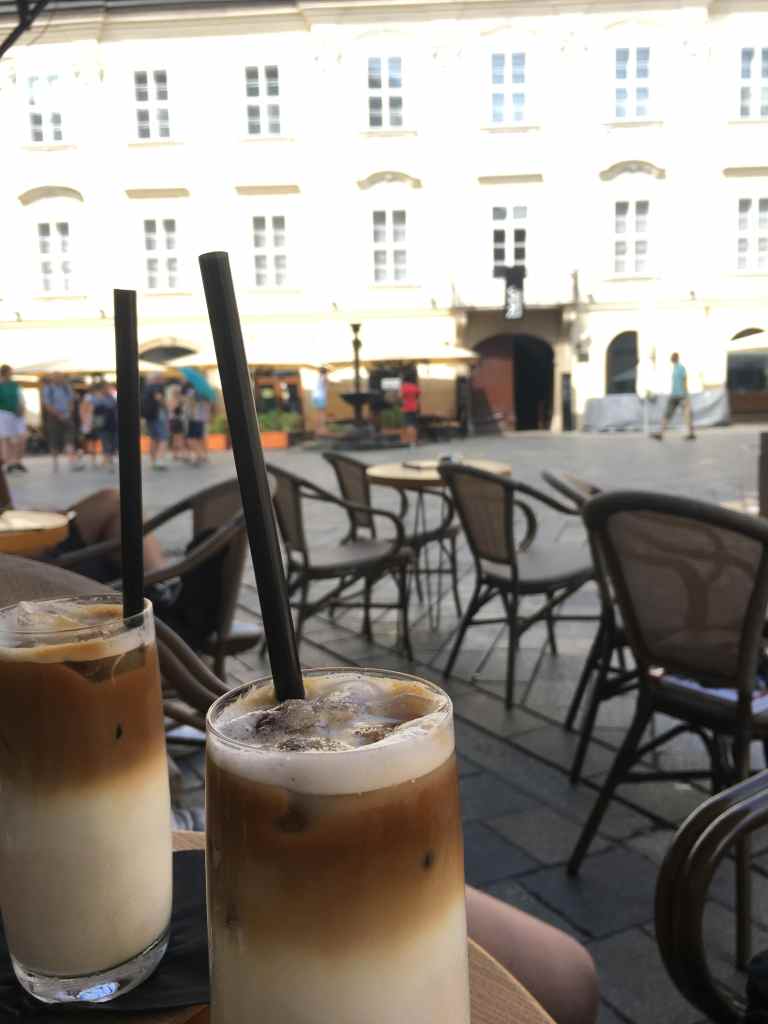 After returning to Bratislava in the late afternoon, we go for another stroll through the streets which by now kind of feel like home. We have dinner at an Austrian restaurant specialized in Schnitzel and potato salad. For dessert we treat ourselves to a slice of cake from the pretty patisserie we’ve been eyeing for the last couple days. We devour the sweets on the main plaza watching a concert of a balkan band playing at the local summer festival. Enjoying the last day of our mini-vacation we head for Mojitos and Mezcal afterwards, before falling into our bunk beds exhausted and sad to be leaving early the next morning.