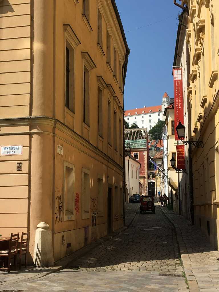 A week later we meet up at Lucerne train station after my shift at the hotel and rush to Zurich airport, celebrating the mini-vacation with a cold beer. A short plane and bus ride later, we arrive in Bratislava. The first thing we see is the castle towering over the city and after turning into one of the cobblestone streets, we are smitten. Selina guides us to our hostel and we leave our carry-on bags in the dorm’s locker. After a late evening stroll through the small Old Town, we go to bed in anticipation of what the next day is going to bring.
