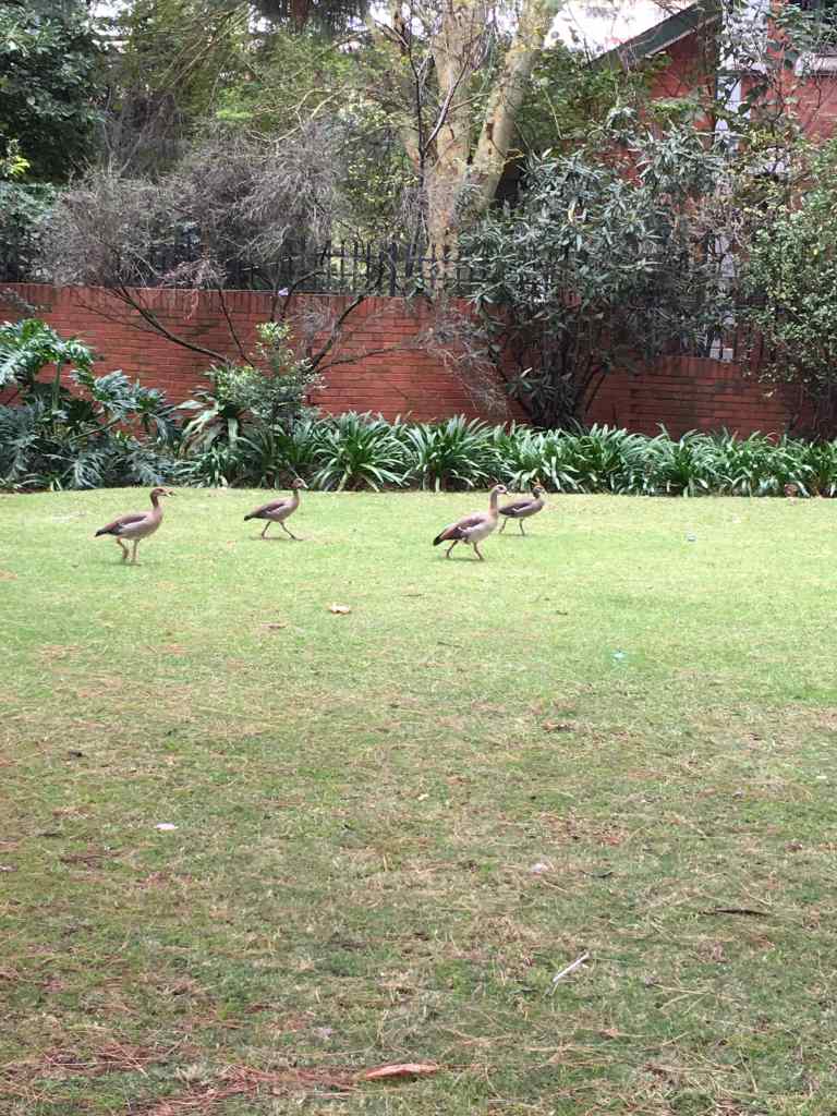 Suddenly a big flock of Egyptian geese decides to fight us for our spot in the sun and Tina and I take it as a sign that it’s time for us to leave. (It’s not the last time that these geese interfere with our plans in South Africa). We walk the short distance to the train station and with a little help from a local manage to buy a ticket and find the platform where the Gautrain leaves. Just like Marc told us, we get off at Marlboro station and try to find a taxi to take us to Nadja’s address. While walking through the dusty streets between low brick buildings, we get a sense of how the less fortunate inhabitants of Johannesburg live.