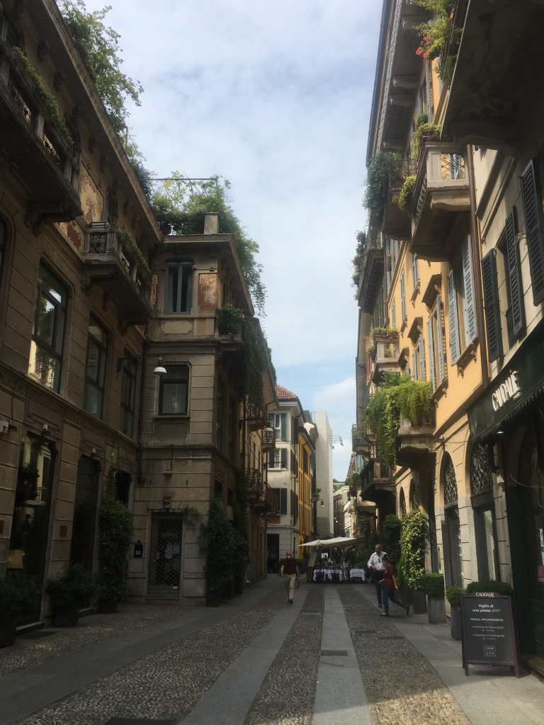 The next day, after refusing Cinzia’s offer to drive me to the train station several times, I walk there when she’s already at work. The 30-minute ride is over before I know it and another short walk later, I arrive at the world famous «Duomo». On the hunt for an Italian book, I walk through the Galleria Vittorio Emmanuele II and am rather surprised by the number of international tourists strolling through the luxury department store’s gallery. I continue my walk north towards “Brera” where I do find a tiny secondhand book shop. After an interesting conversation with the shop clerk in a mix of Italian and English, I find a nice, thin book with a pretty picture on its front.