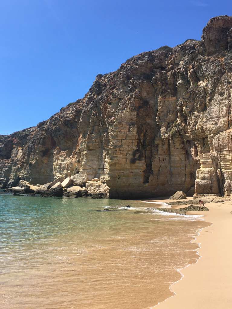 The small town is located between Lagos and Portimão and only local busses stop there. This strengthens my feeling that I’ve found a hidden gem. However, I didn’t keep in mind, that lots of people will be travelling here by car… There are loads of people still enjoying their summer vacation at the nearby all-inclusive resort and in the countless beach apartments. Nevertheless, I very much enjoy the privacy of my own room at the Alojamento Local that I’m staying at. As well as a beach day exploring the cliffs at Praia da Prainha.