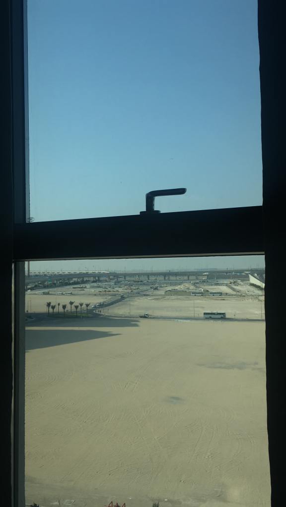 Sitting next to me on the plane is Liana, also from the Guest Relations team. We spend the flight talking between watching movies and I learn that she hasn’t figured out her apartment number yet. After landing, we walk through the whole of Dubai airport together. On the way, we gather more and more pavilion staff. We’re all a bit unsure about entering the country with a work visa which might or might not be existing yet. But all of us pass the check by the men in Kendoras and we proceed to the baggage area.