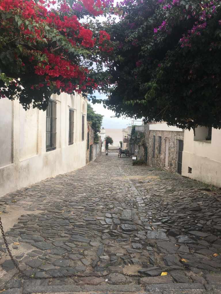 As the minutes pass, the conversation between my parents and me gets quieter. My way of fighting the nausea is trying to sleep. My mom concentrates on the horizon (whenever it’s visible) and my dad is in pure survival mode. Suddenly, I am awakened by my mom ripping the white bag from my hands. My first instinct tells me to hold onto this safety blanket. But then I turn around and see my dad’s bulging bag in his shaking hands. By now more than half of the passengers are reliving their breakfast or have already emptied their stomachs completely. Fortunately, we arrive in Colonia del Sacramento, Uruguay shortly after.