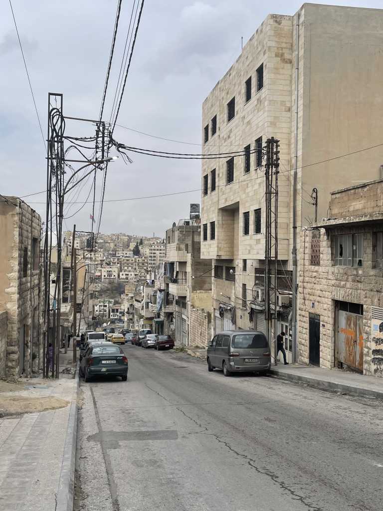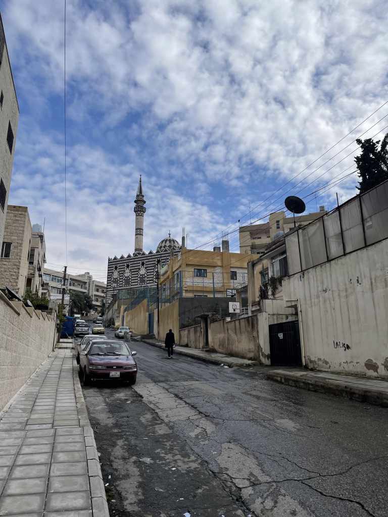 Re-fueled, I brace myself for the next ascend. My goal is to reach the Abu-Darwish mosque on top of Jabal Al Aschrafiyya. With its unique black and white stripes, it’s visible from far away. As soon as I turn around the corner of the theatre and off the main street, the atmosphere seems to have changed. There are no more tourists, no children playing and laughing and no honking cars. Most people I see are walking downhill towards the centre. A couple of them – well-meaning, but unasked for – give me the directions to the Roman theatre and tell me to turn around. I thank them but continue my uphill walk. Only after the third encounter of this sort do I ask the man if it’s dangerous where I am headed. However, he doesn’t seem to understand me and just keeps pointing to the theatre.