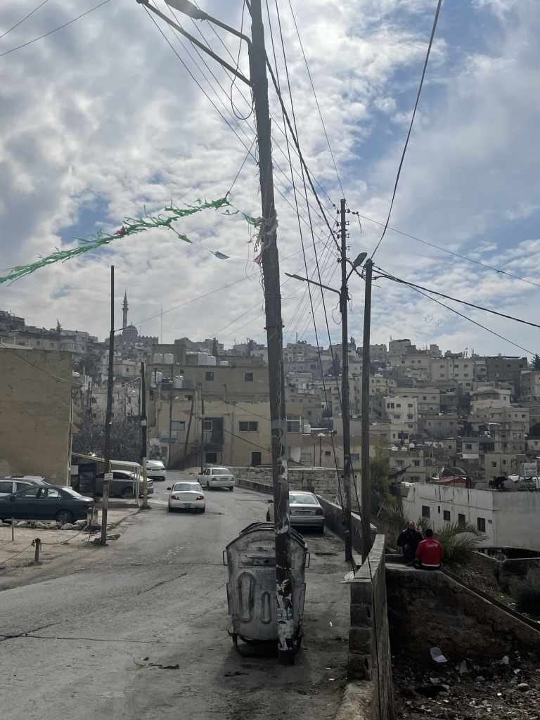 Quite tired by now, I prepare for the descent back to the city centre on the other side of the hill. The winding streets are quite similar to the ones I took on the way up. They are lined by beige cubic buildings with flat roofs and trees planted in fenced-in front yards. On the rooftops, you’ll usually see some water tanks and satellite dishes. Across the streets span hundreds of power lines, mounted on wooden posts on the sidewalk. After a good 25 minutes, I reach more lively areas and finally arrive at the Downtown Souq. The first stall I see sells a variety of sweets straight from the bowl-shaped, hot stove. I treat myself to some fried dough balls covered with lots of sugar and head back to the hostel.