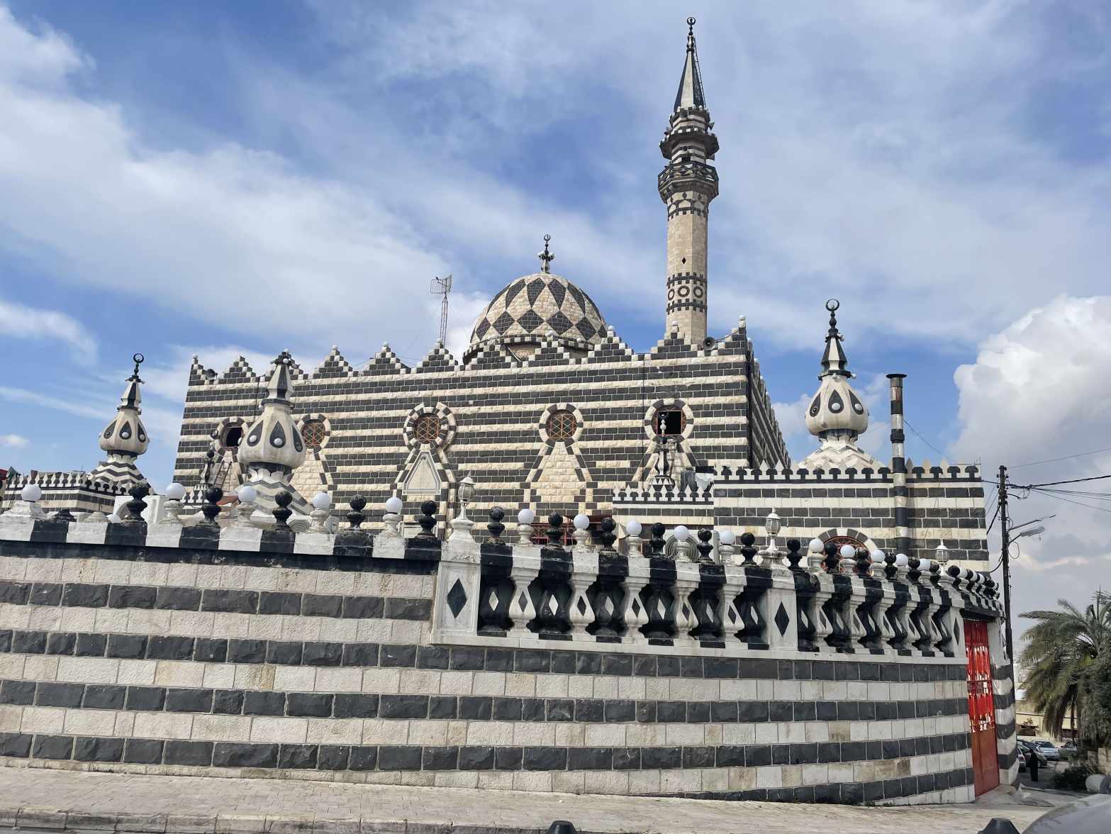 Re-fueled, I brace myself for the next ascend. My goal is to reach the Abu-Darwish mosque on top of Jabal Al Aschrafiyya. With its unique black and white stripes, it’s visible from far away. As soon as I turn around the corner of the theatre and off the main street, the atmosphere seems to have changed. There are no more tourists, no children playing and laughing and no honking cars. Most people I see are walking downhill towards the centre. A couple of them – well-meaning, but unasked for – give me the directions to the Roman theatre and tell me to turn around. I thank them but continue my uphill walk. Only after the third encounter of this sort do I ask the man if it’s dangerous where I am headed. However, he doesn’t seem to understand me and just keeps pointing to the theatre.