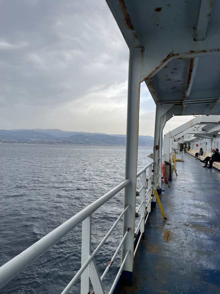 Now let’s talk about the latter reason for my unproductivity. Of course, I knew that Sicily is an Island, and we’d therefore somehow have to cross the Mediterranean Sea at some point. However, in my mind, it was clear that we’d do that by crossing a bridge. Spoiler: there is no bridge between San Giovanni on mainland Italy and Messina on the island of Sicily. As I didn‘t know that, I was caught off guard when the train stopped in San Giovanni for an uncomfortably long amount of time. After 30 minutes of waiting, I am almost certain that the few other people in my carriage and I have been forgotten and abandoned on an empty track in this strangely big station.