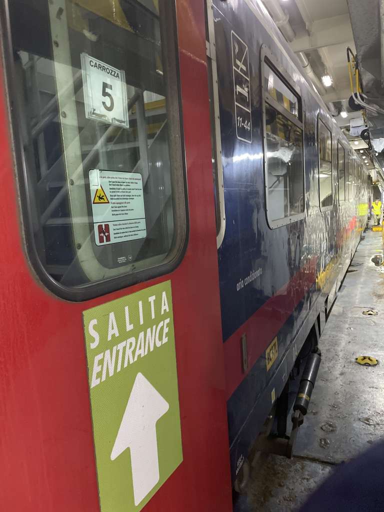 Finally, when the ferry docked in San Giovanni, I solved the last mystery. How does such a long train fit in there? There were several tracks next to each other on the ferry. As I was in one of the first carriages, we rolled in and out of the boat a few times. Each time they connected another couple of carriages to the locomotive until the train was finally complete again.