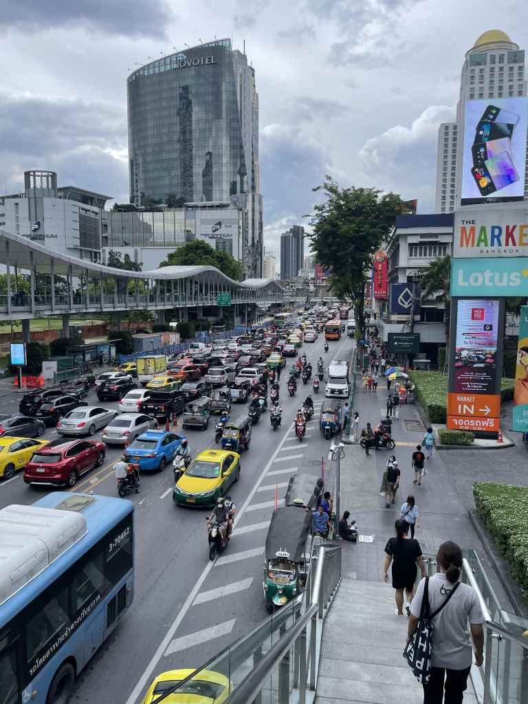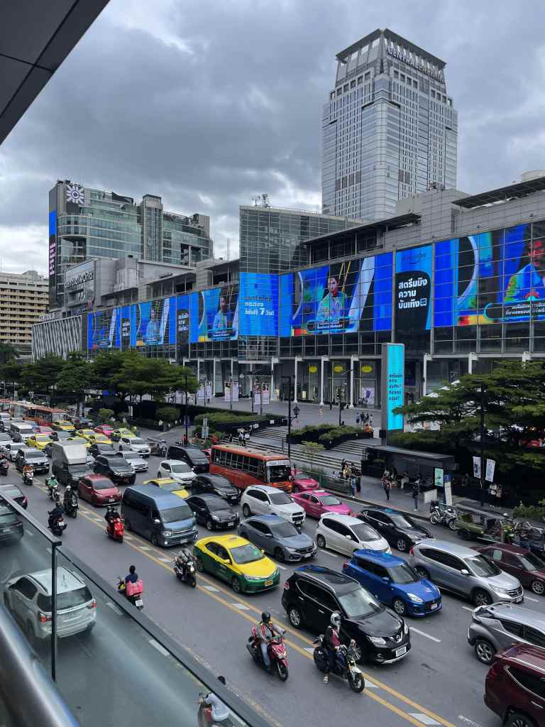 Having mastered that first Southeast Asian bus ride, I arrive at the western-style mall, where I‘m on a mission. Fortunately, there are maps of each of the mall‘s 7 floors. I localize the optician on floor 3 where I order new contacts. On the way back out, I also manage to buy some face masks and a power adaptor. I finish this journey with a visit to the street food market in front of the mall and then hop on a bus which takes me back to Chinatown. Just as I hop off the bus opposite Depsirin School, the first monsoon rain surprises me. So I quickly run to the hostel.