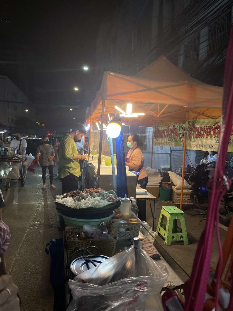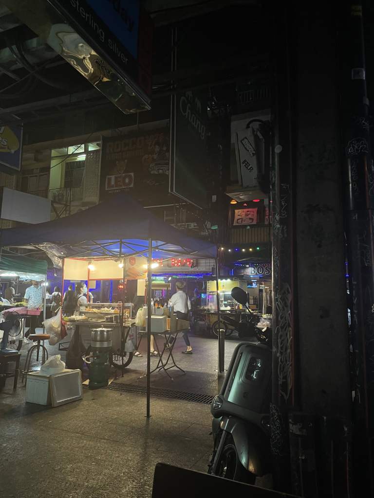 Once the Welsh girl arrives, we go look for a bar Clara has heard of. It‘s supposed to be located just off Khao San Road. But unfortunately, there are no bars to be found in the dark, deserted alley. So we head back to the deafening sounds of all different kinds of music. We sit down at a Reggae place at the end of the street and have a couple of beers. At around 1 am, we decide it‘s time to leave this place behind and head back to Chinatown. On the way, we pass another set of temples and a cute café, whose owner generously lets us use their bathroom. With Eleni as our guide, we smoothly make it to the night market, and I am (once again) overwhelmed.