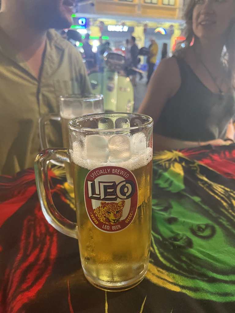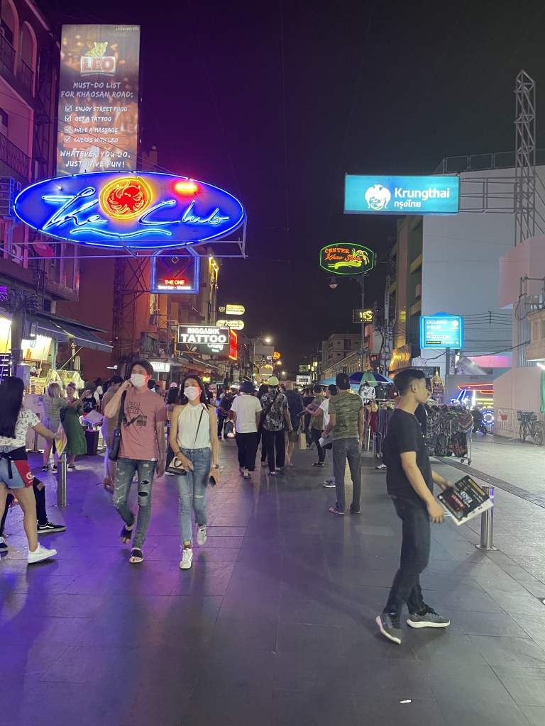 Clara, Erhan and I stroll down the bar street in awe. It‘s impossible to take it all in. The neon signs, the people, the smell of street food, the vendors selling grilled Scorpios on sticks or bracelets with offensive words and last but not least: the music blasting from every single shop! On Erhan‘s wish we resort to a small 420 café at the end of the street and get some brownies and something to smoke. We enjoy the quiet pop music they‘re playing and chat while waiting for Eleni.