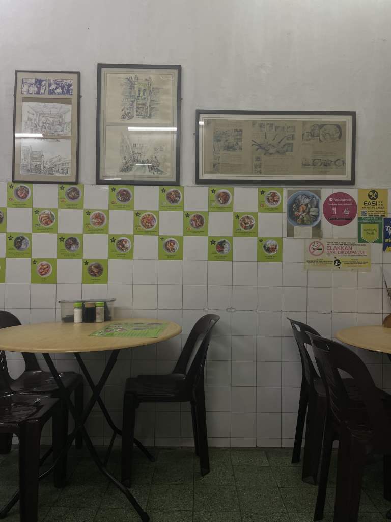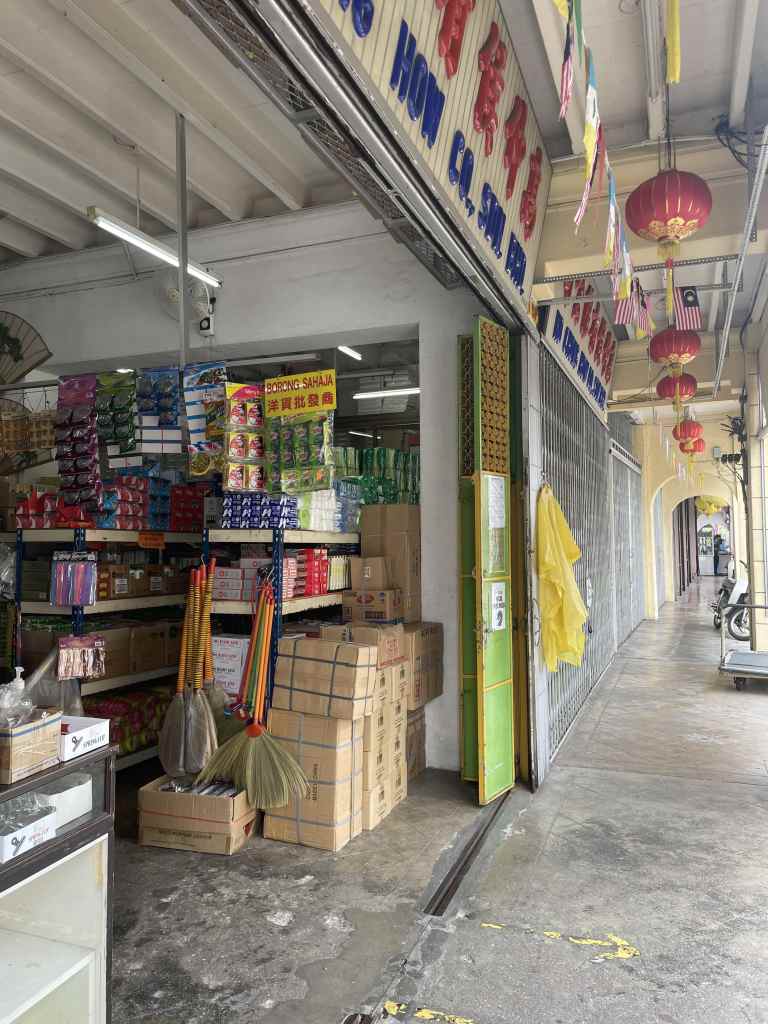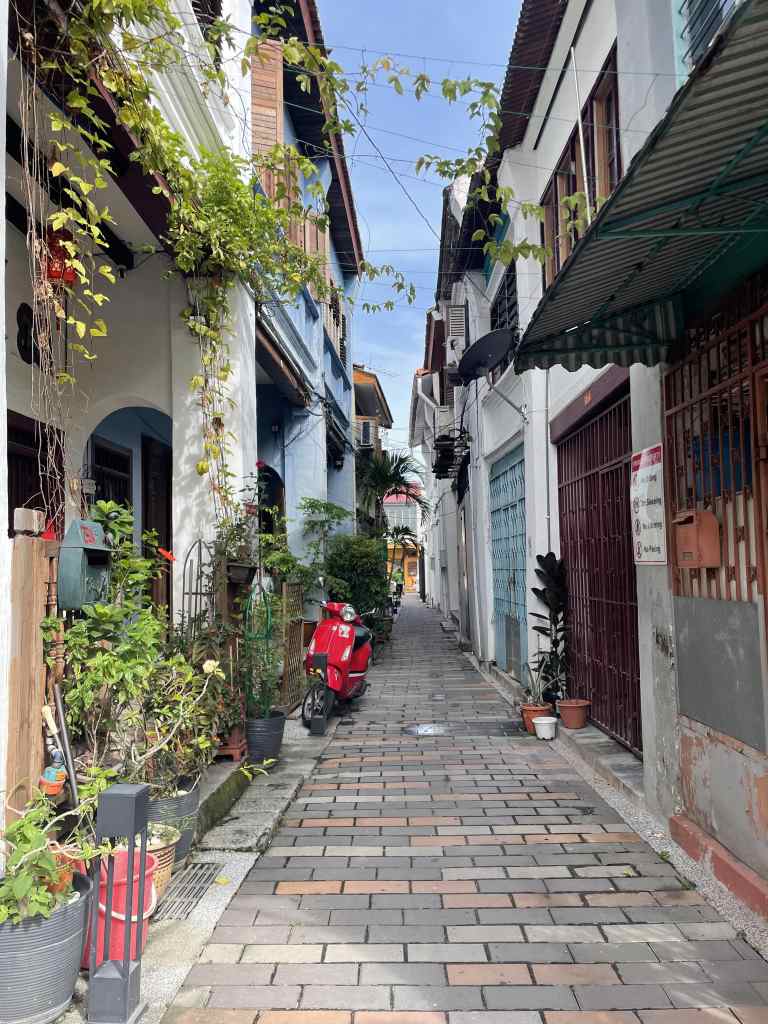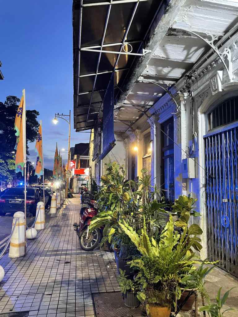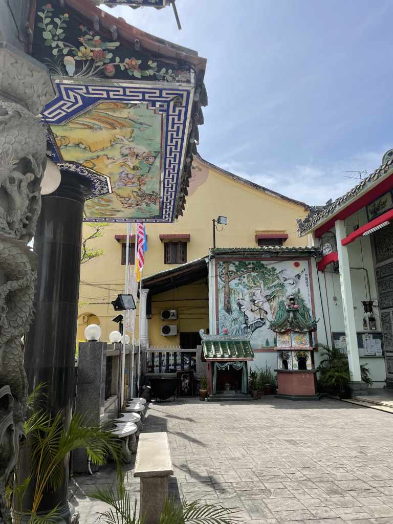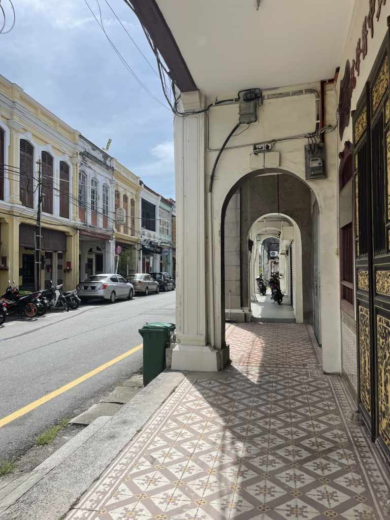 The next day, despite the heat, I end up walking all around central George Town. My morning stroll first takes me to a nice coffee place and after to Cheong Fatt Tze’s “Blue Mansion”, only to learn that it‘s closed due to a private event. So I continue to aimlessly wander around the streets, finding a beautiful Chinese temple and old merchant houses with tiled entrances covered by colourful arcades. By noon, I reach Jalan Pintal Tali. On this street in Chinatown, there used to be traditional rope spinner shops. Nowadays, Chinese merchants sell all kinds of goods. At the end of the road, I turn right, in search of lunch.