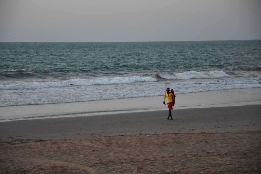 From the border to Dubai, it’s still quite a way to go, and we don’t really want this beautiful weekend to end yet. So we decide to stop at a nice sunset spot on the way. We drive into Ras’ al-Khaima just as the sky starts to turn different shades of orange and quickly take the decision to head to the beach. Liana is giving it her all, and we speed down the highway to Flamingo beach, while I am again leaning out the window with her camera in place to capture this magical moment. We arrive just before the deep red ball of fire hits the blue line of the horizon. With the car parked, we stroll down to the sandy beach and join the Emirati families admiring mother nature. There are families picnicking, old couples sitting in beach chairs and kids playing soccer. What a blissful evening.