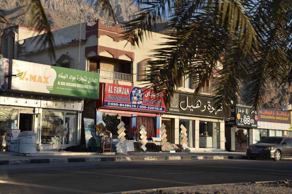 However, this does not stop the creepy local guys from looking back and forth between us and each other. Nodding every time their gaze crosses one of their countrymen. This is one of the few incidences of this kind I recall during my time in the Middle East, but I still think it‘s important to mention. At first, we joke about it and laugh it off, but all of us don‘t feel like ordering another drink, and we soon head back to our room. After a good night’s sleep and another delicious breakfast, it‘s already time for us to check out. Before making the journey south to Dubai, we want to have a look at a few spots mentioned on Mohammed Ali‘s flyer from yesterday. So, with all of our luggage packed into the boot of our small Nissan Sunny, we drive to the east and leave Khasab behind us.