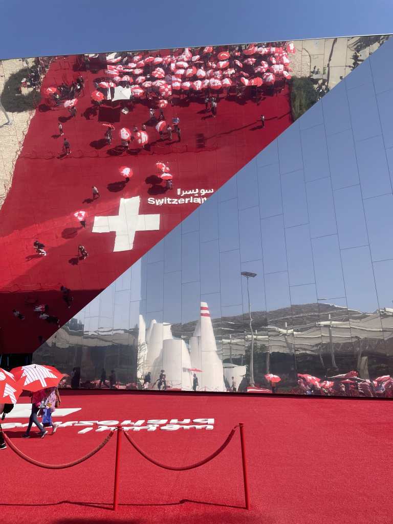 Amidst the international crowd of Swiss, Bolivian, US-American, British, South African, and New Zealand parents supporting their kids who grew up here, we watch Nubya‘s cousin win one game after the other. Even though all of them have been living in the UAE for several years, nobody seems to be too sad to miss out on the national day celebrations. And when asked if they have visited Expo 2020 yet, most say no. They wanted to avoid the crowds during the opening day and felt like they still had enough time to visit until it was closing in a few months’ time. Nubya and I promise everyone to provide them with fast access and a private guided tour of the Swiss pavilion if they come to visit and give our personal opinion on the must-see attractions on the site.