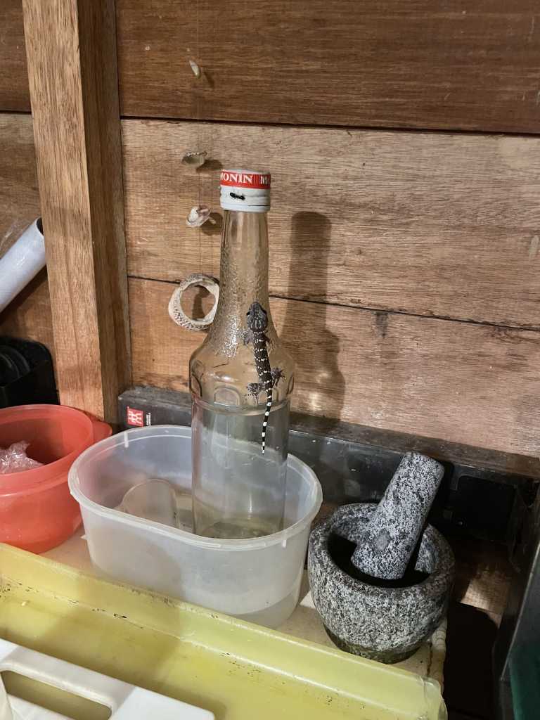 As my first shift starts in the evening, I go to the beach for the first swim in the crystal clear waters of the Thai gulf in the afternoon. I see some crabs sunbathing on the big rocks and a cargo ship delivering food and other essential goods to the small island‘s inhabitants. As there are no streets on the Perhentians, boats are the only mean of transport available. In the evening, I learn everything about the fruit juices I will be making in order to cover my accommodation and meals. I meet the first tropical wildlife in the form of hungry mosquitos and cute Tokay geckos. I only realize how tired I am, once I serve the last guests their Chocolate Biscuit Cake and Banana Toffee, and we start to close the restaurant‘s bamboo blinds.