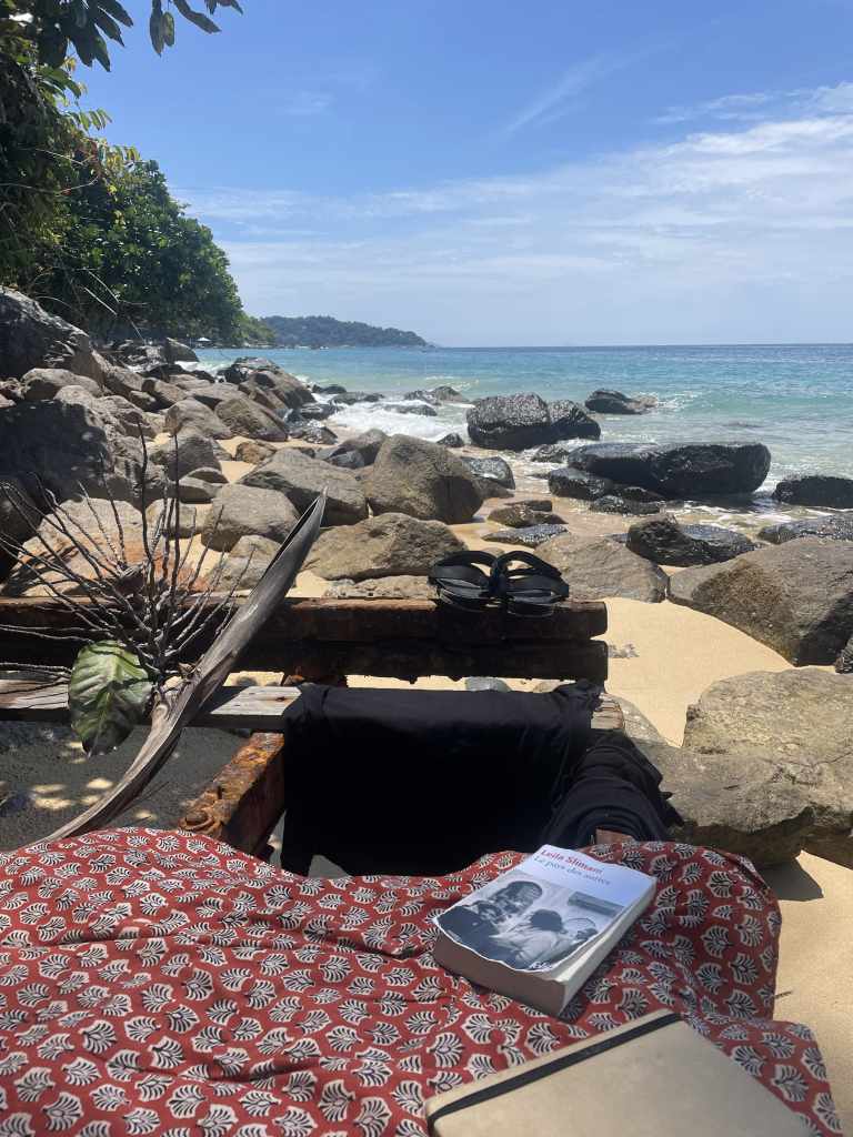 Another day I decide to venture a little further down the jungle path. As the jungle has a mind of its own and the strong winds frequently make high trees fall, the path is overgrown in some places. The islanders do their best to make it passable, but sometimes you simply have to walk around some fallen trees. And that day passing the overgrowth leads me to the most perfect „Cast Away“-like hidden beach, that I have all to myself. I chill on the rusty abandoned float with breaking wooden planks and watch the clouds floating by high above me. Hours later I return to the bistro, recharged and ready for the dinner service. I mix more fruit juices and prepare more delicious desserts. While the guests mostly choose Westernized dishes like the Chicken Burger, we enjoy Sue‘s Thai and Malay cooking. I will never forget her curries and the Nasi Lemak.