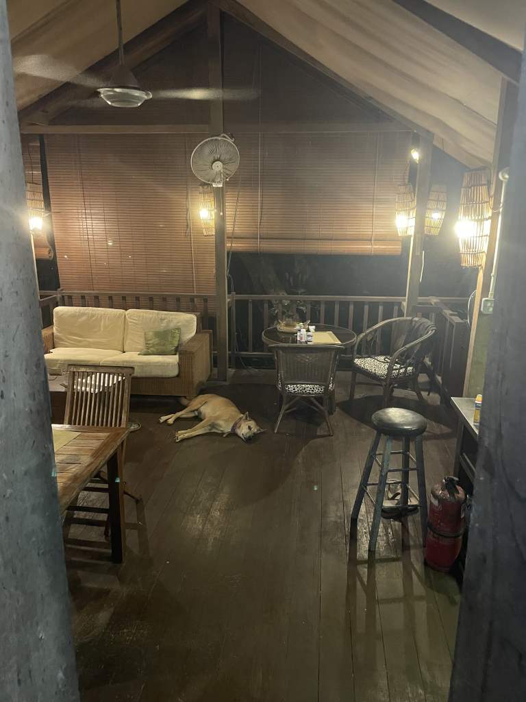 Fast-forward to 31 August. I arrive in Kuala Besut late in the evening from Penang and miss the last ferry to Pulau Perhentian Kecil for the day. I text the people from Crocodile Rocks, and they recommend me a place to stay and suggest I simply take the first ferry the next morning. And so I do. The 25-minute boat ride flies by, and I am the first passenger to disembark at Rainforest Beach. I ask Comel Chalet‘s receptionist for directions to Crocodile Rock Villas, and he vaguely points to the left, where I see nothing but lush jungle. I cross the beach and see a small path leading into the forest. A short walk later, I finally arrive at my destination and head up the wooden stairs to my home for the next weeks. I am greeted with breakfast and shown to my private jungle hut where I‘ll stay for the month.