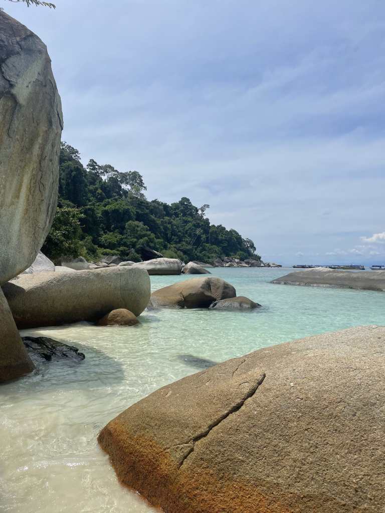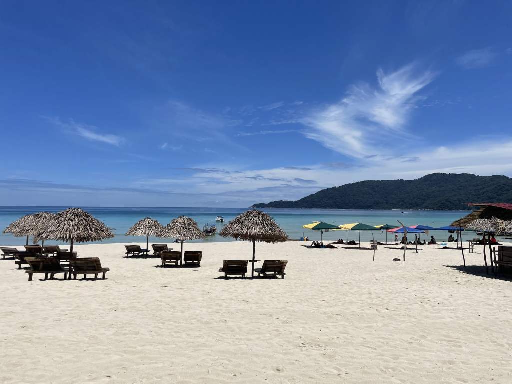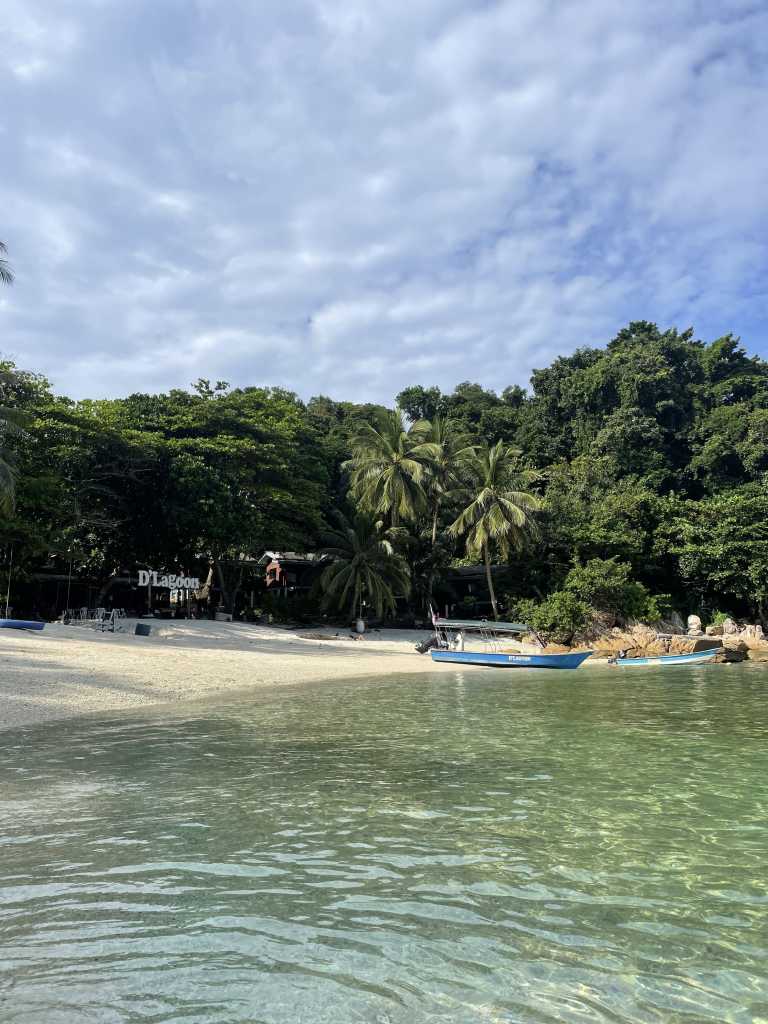 As you‘ve read before, I spent September 2022 in the small tropical paradise called the Perhentian Islands in Malaysia. While working at a lovely bistro in exchange for accommodation and meals, I had plenty of free time to explore the two islands Pulau Perhentian consists of. As I was staying on Kecil – so the small island – this is the one I‘ve seen more of. There are no roads on either island, just small jungle walking paths connecting places of interest and of course, water taxis. There is one fishing village on Kecil, where most of the Malaysian people working on the islands live. The main walking street is lined with several mini markets and restaurants, as well as a basic clinic and a few guest houses. It‘s a Muslim community, so there is a big, very pretty mosque overlooking the channel between the two islands in the village too. But let‘s get to the part anyone is looking for when planning a visit to an island: the beaches.