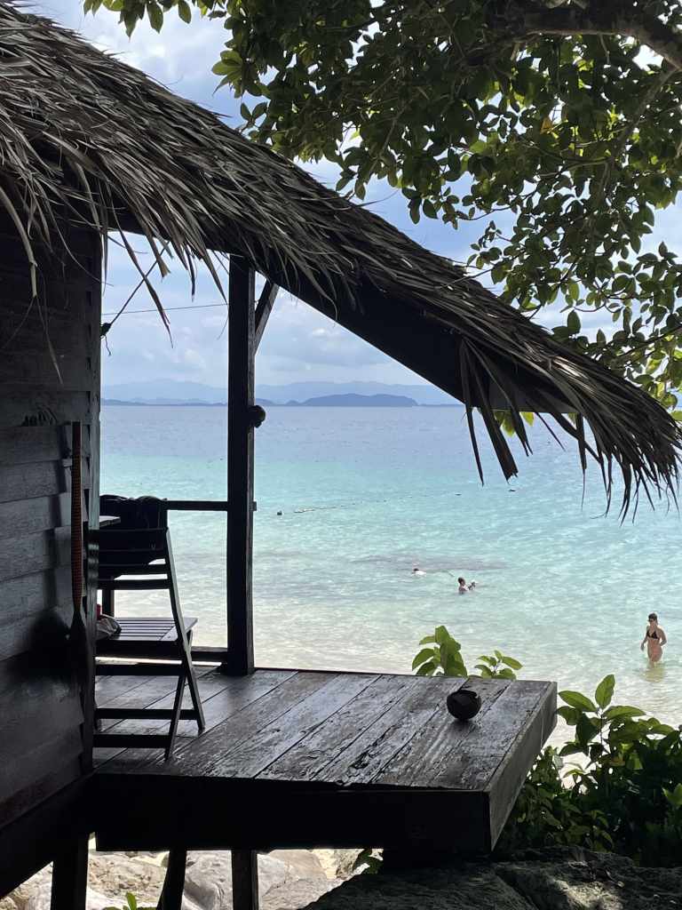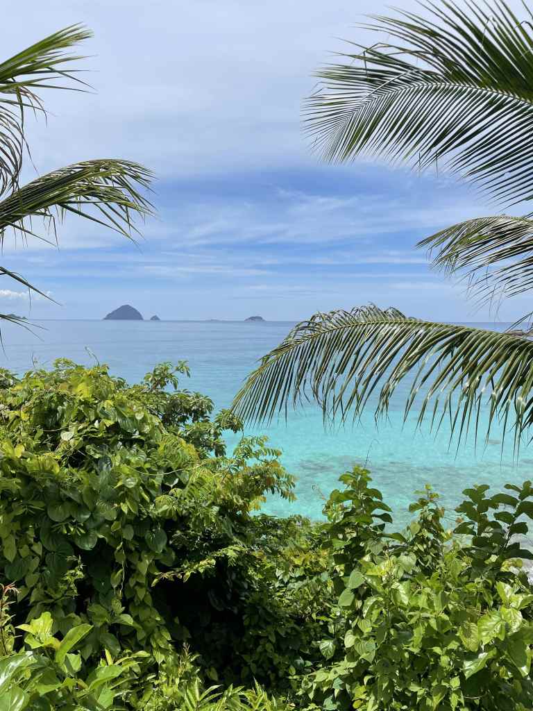 When I‘m not diving, I explore the lush jungle which covers both islands. I hike all the way up to the windmill on Pulau Kecil. Or I take a water taxi from Coral Bay to paradise-like Adam and Eve beach. I have it all to myself and enjoy the peace and quiet until I feel my stomach rumbling. Time to hike across the small hill to D‘Lagoon. Apart from the stunning reef (which can also be explored by snorkelling), there is a small resort with a good restaurant, a crazy monkey, and 2 beautiful cats. In the late afternoon, I let the owner know that I want to go back to Long Beach by boat, whenever there are other people heading there. The minimum price for the water taxi is for 2 people. So if you‘re alone and not in a rush, it‘s better to wait a bit in order to save some money. I sit at the beach for around 30 minutes before a couple arrives who‘s going in the same direction. From Long Beach, I walk the 40 minutes back to Crocodile Rock and arrive just before nightfall, which is when I usually go to bed.