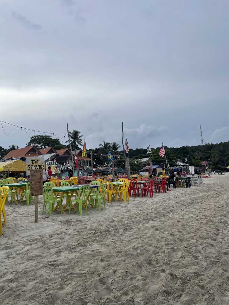 While there is a party scene at Long Beach with something happening every night, I only go there once on Malaysia day. As there are no boats at night, due to the lack of light, I have to complete the walk through the dark jungle twice. Equipped with my headlight, I follow my host family‘s son to his preferred bars. I immediately order a Tequila Sunrise to cope with the mass of people sitting at the beach, smoking shisha, while watching the intense fire show. I don‘t wait for the end of the show before heading over to the resort at the very end of the beach, where it seems to be a little quieter. I finally sit down on one of Bubu Villa‘s beach chairs and admire the night sky. The only thing stopping me from returning to my quiet jungle hut is the 40-minute walk. So I stay on the beach a little longer and eventually meet some lovely expats who live in KL and are here for the long weekend. Slightly intoxicated, I walk back through the jungle at 4 am and don‘t even flinch when a big Monitor Lizard jumps out of the bushes in front of me.