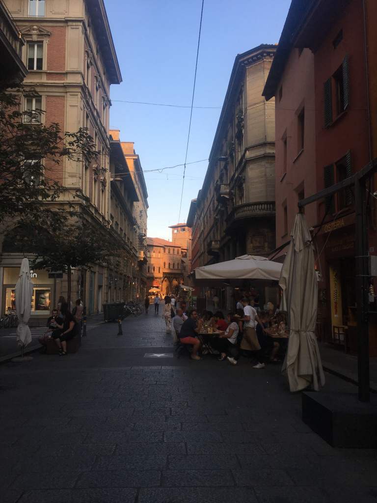 After yet another long evening, we again wake up late again. In an effort to change things up, we take a different route to the city centre and walk past the Parco della Montagnola towards the botanic gardens of Bologna. To our surprise, they are open to the public and completely free. So we find a bench in the shadow of a big tree and chat about anything and nothing for a good hour or so. After, we find a cute café for brunch and slowly make our way to the one sightseeing attraction we have neglected so far. Le due Torri: Garisenda e degli Asinelli. The (slightly) leaning towers of Bologna are located right in the city centre and accessible to adventurous (and sporty) people. Due to the summer heat, we skip the climb up the steep stairs and instead head towards Piazza Santo Stefano. There are several Palazzos and pretty churches located just off the grand square, and we find a nice courtyard with a bunch of statues. We spend the afternoon occupying ourselves with picture-taking and people-watching before indulging again in our favorite hobby: aperitivo-bar-hopping.
