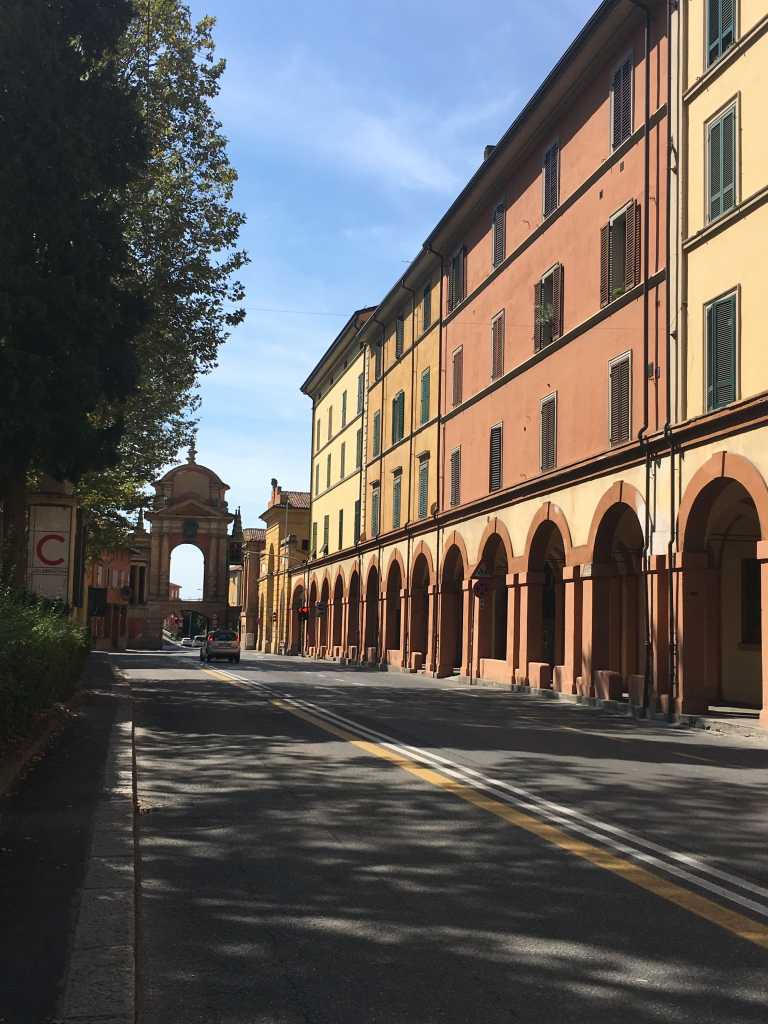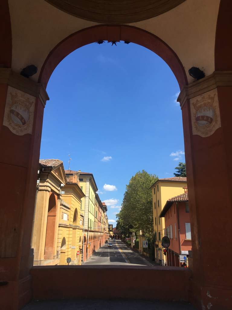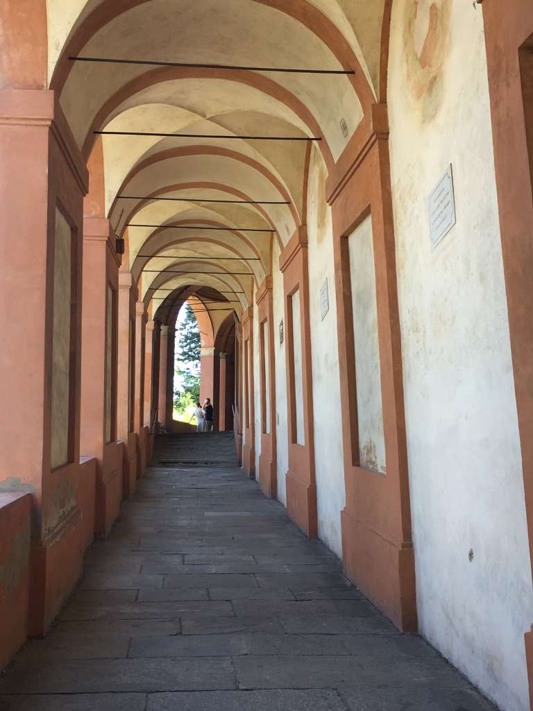 The next day begins with a late start and a delicious brunch. Feeling like living the city might help with the intense summer heat, we quickly look up close by nature spots and come across Santuario della Madonna di San Luca. That‘s a gorgeous cathedral located on top of a hill, which is easily accessible by bus from the southern end of the city centre. So we follow the arcades and patiently wait for the small local bus. Apart from us, there is only one old lady heading out of town. Once we leave the last stone buildings behind us, we drive up a windy road lined with pine trees. The views are straight out of a film, and we are almost sad when we reach our destination. That doesn‘t last for long, though. After a quick look at the cathedral, we slowly walk back down to the other side of the hill. There is a looong stairway – of course, covered by yet more arcades – leading all the way down to the town center.