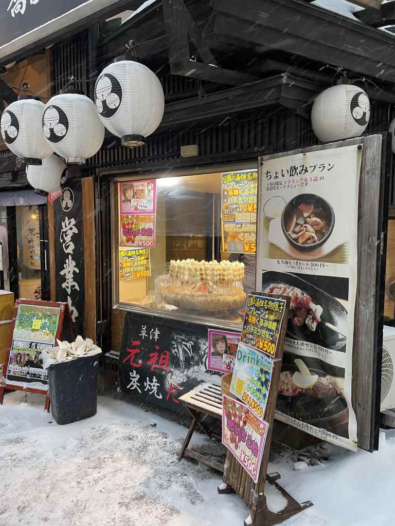 Like this, my two-week stay in Kusatsu Onsen pass incredibly quickly. To thank me for my help, the hosts take me out to an Izakaya (one with a less aggressive way of telling customers they don’t speak English) for my last meal with them. We enjoy a bottle of very tasty Sake and Mushroom Nabe (Japanese Hot Pot). They let me order Karage too and by the end of the meal, suggest we go for another Izakaya where they play Karaoke. Intrigued, I accept the offer. But unfortunately, the bar is closed. So another Izakaya is found, and we soon sip on the cold beers, while chatting about my future plans in Japan. On the way back to the guest house, it’s snowing once again. The large, soft falling flakes turn the anyways beautiful Yubatake into a magical sight. I stop by one of the foot baths to fully absorb the blissful atmosphere for a last time before returning to bustling Tokyo the next day with the Expressway bus.