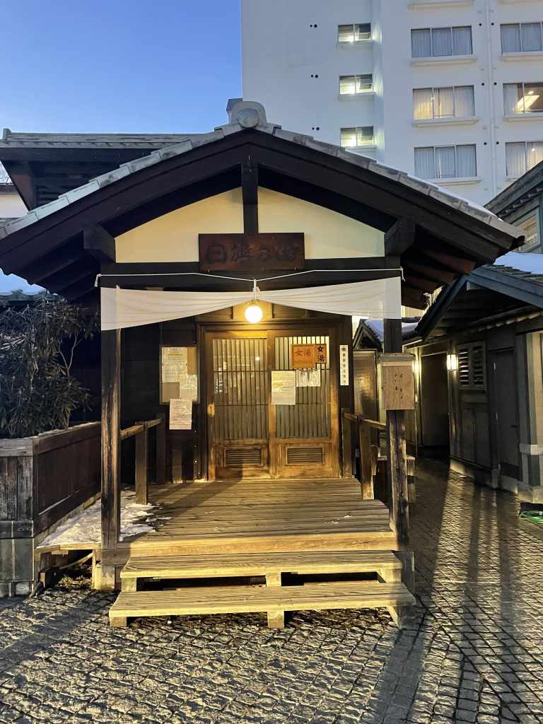 But let’s get to the best part of Kusatsu Onsen. The free public bath houses. There are dozens of them, but only 3 are advertised for tourists. My personal favourite out of the three is Jizo-no-yu. It’s located away from the main street and therefore less visited. Here, the changing area and the basins are in the same room and the ceilings are very high, which makes it the biggest of the lot. I come here on my very first night in Kusatsu with a couple of guests from the guest house. That night the water is way too hot for me, but just after a week, I dip like a pro My other go-to for a quick evening soak is Chiyo–no-yu. It’s a very small bathing house close to the town center and can easily get crowded. And finally we have Shirahata-no-yu, located directly by the Yubatake, which makes it the most frequented of the three. The advantage here is the 2 different temperature tubs. What you have to keep in mind: there are no showers in the free onsen and the water is very hot! 45°C+.