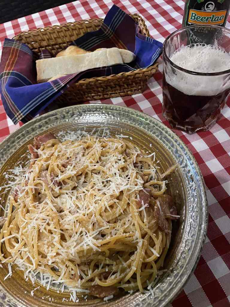 One of my favorite parts of my journey through Southeast Asia begins in Pakse. After getting off the nightbus, I stumble into the 1918 Hostel and a few minutes later am shown to my bed for the night. I pass the day reading, writing, watching the sunset at the Mekong alongside local youths and treat myself to the loveliest Italian meal since June! Seriously, Dok Mai Lao Trattoria Italiana is an incredible place if you crave European food when in Southern Laos. I enjoy a delicious 3-course meal of Bruschetta, Spaghetti Carbonara, and Tiramisu with a beer for a grand total of 12 Euros. And with this, I am ready for the next day’s adventure. I want to take a sidecar motorbike taxi to the local market, where I should get on a Songthaew to make it to the Bolaven Plateau.
