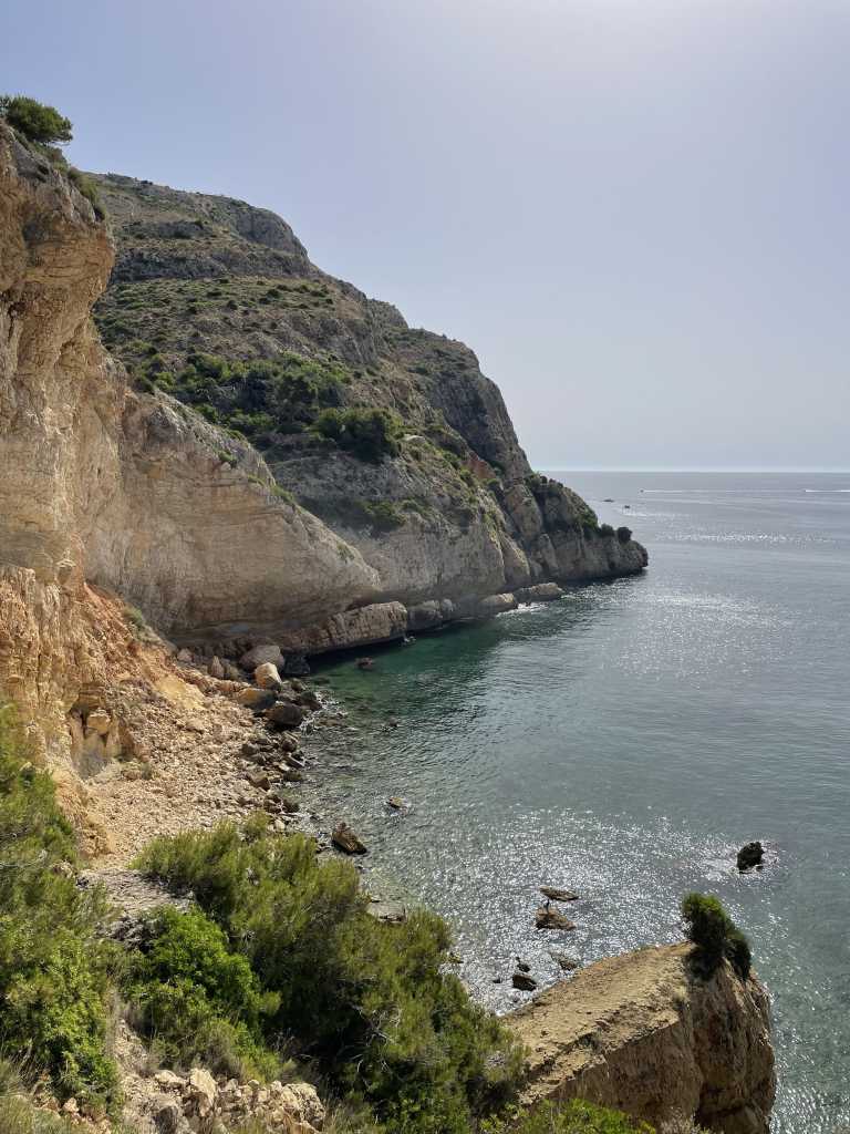 Another day trip leads me to Calpe. The beach town between Jávea and Benidorm is famous for its long beaches and the Natural Reserve of Penyal d‘Ifac. The huge rock is visible from high up on the curvy mountain street leading down to the ocean. And safe to say, its sight is even more impressive when you‘re standing at the bottom of the park. Armed with only 1 litre of water, I begin the hike through the park, seeking the shadow of the different kinds of trees. The heat is soon getting to me and I actually consider turning around before without traversing the highlight of the hike: the tunnel leading THROUGH the rock.