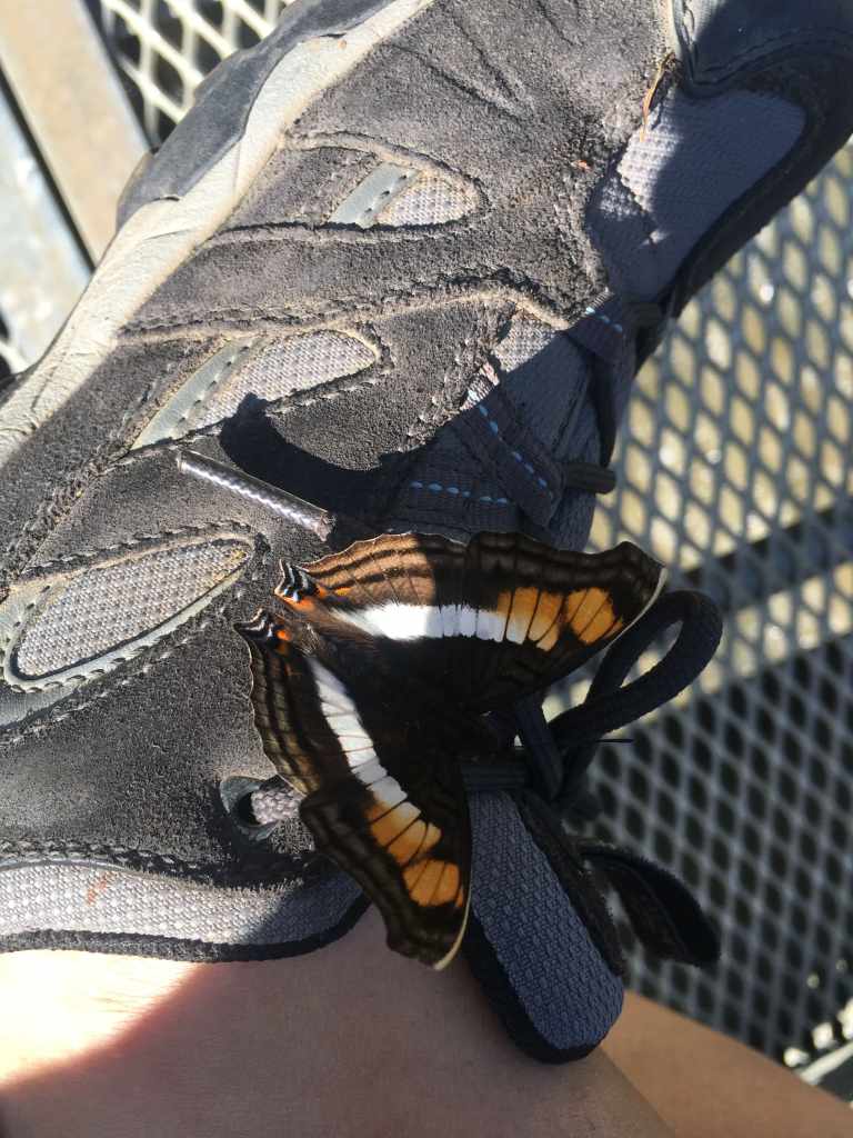 I return to the station and catch the next green train arriving. This time I go one stop further, which brings me closer to the park exit. But before leaving, I want to go on another stroll through the dense tropical forest. I spot a route with few people and start a 2 km circuit. There are lots of butterflies and from one spot I can see the sightseeing boats leaving a beach on the Brazilian side. I stay there for a while and watch a couple of boats return with soaking-wet passengers. I guess the tour takes them to the bottom of the falls, something that isn‘t possible from the Argentinian side. Suddenly, I notice a light breeze of air on my right calf. It‘s an orange butterfly who sits down on my leg. I look at it flapping its wings and when it finally flies away, continue my walk. By now it‘s already 3pm and most visitors are getting ready to leave the park. I, too, head for the exit preparing myself for the change of scenery from a day surrounded by the lush forest and roaring waterfalls to a packed bus.