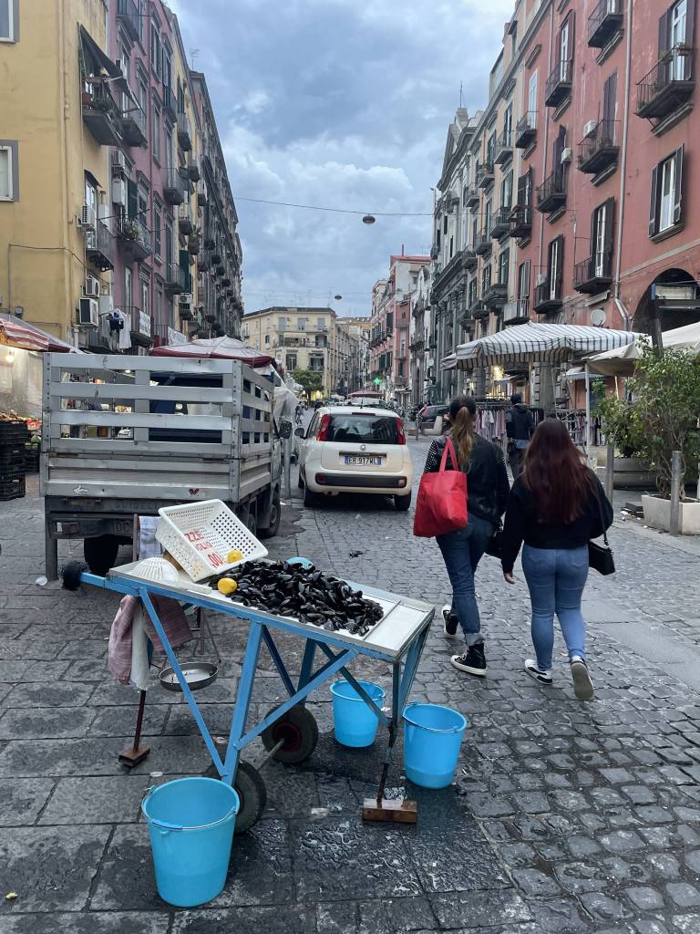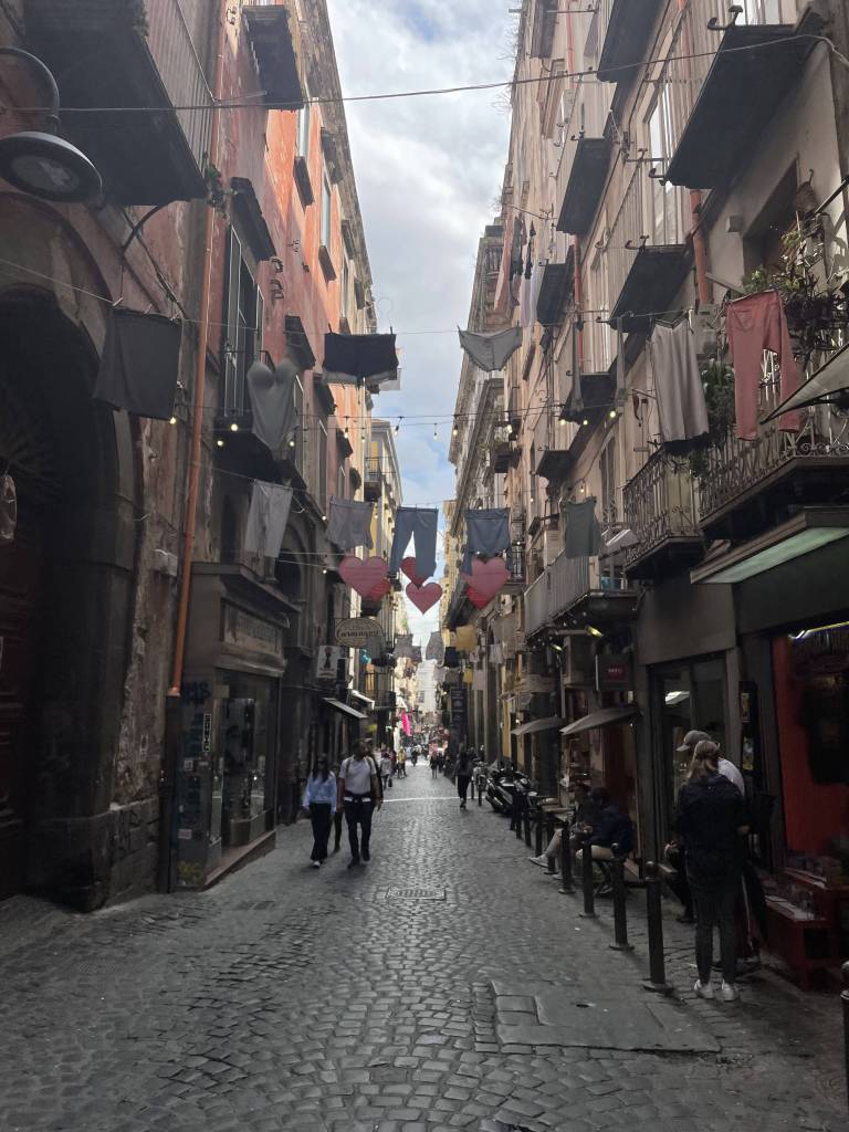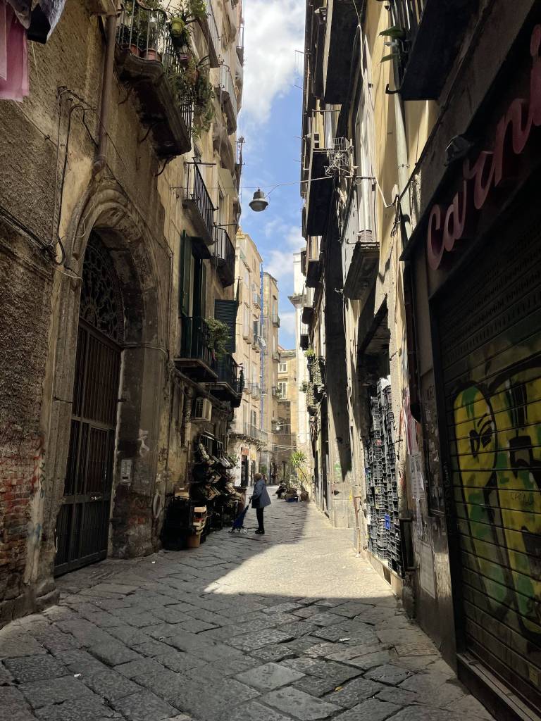 This place is completely different from the north. I booked an Airbnb in the historic centre, just 20 minutes away on foot. I don‘t know if it‘s the morning commuters, but there sure is a lot of traffic. In Milano, Bologna and Rome you do also get some crazy Vespa drivers, but the way Napolitans race their scooters through the tiny alleys is on another level. There are often 3 or more people sitting on 1 motorbike and noone seems to ever have learned how traffic lights work. Since life does really happen on the streets here – in a very non-European way – that does look quite dangerous.