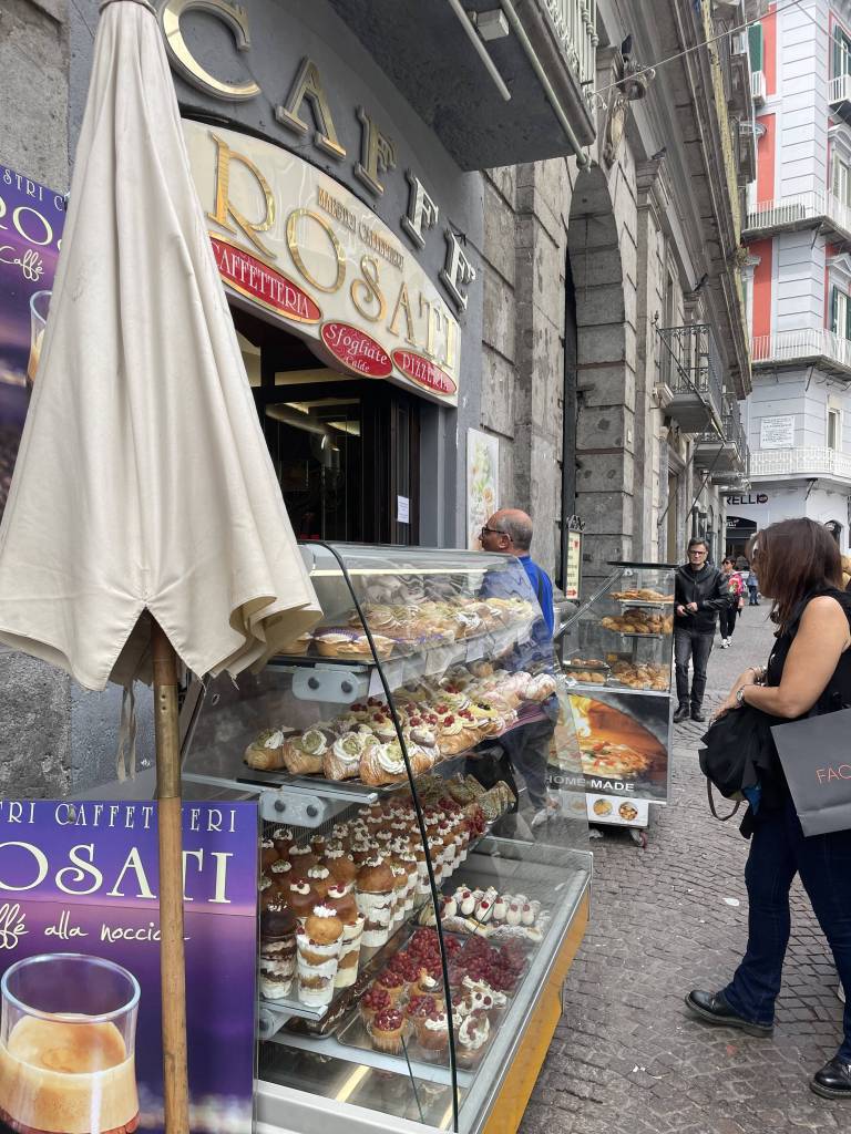 One day I venture through the narrow alleys of the picturesque old town, where clothes are hanging from lines between the buildings. I also head up to Castel Sant’Elmo, from where breathtaking views of the city, bay and Mt. Vesuvio reward me for the steep ascent through winding streets (which is accompanied by the smell of gasoline, scooter exhaust and trash). On the way back down I opt for the scenic route and briefly stop at Villa Floridiana to soak up the mediterranean architecture and views of the orange trees lining the streets below me.
