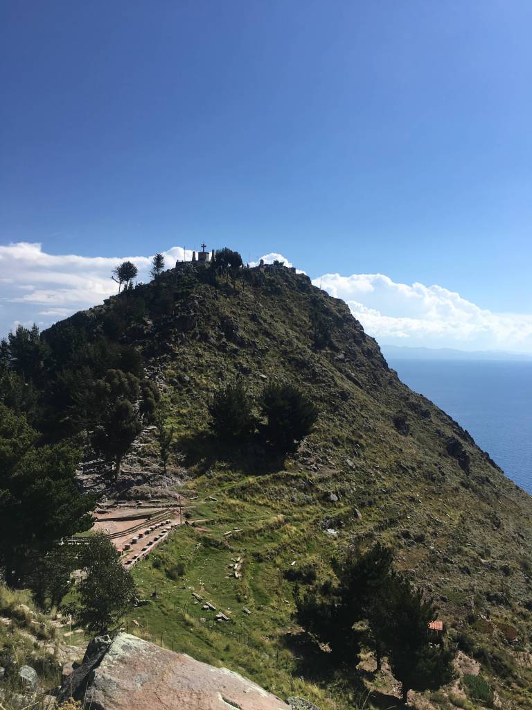 With the new cash I buy some snacks and then venture up to the hill marked as „Descanso y Tradición“ on Google maps, which seems to be overlooking the large lake. The stone steps are steep and I can definitely feel the lack in oxygen in the air due to the high altitude of almost 4000 meters. I take a couple of breaks and spontaneously take a detour to another closeby hill with a chapel at the top. Once I get closer, I realize that Cerro Calvario is actually a cemetery.