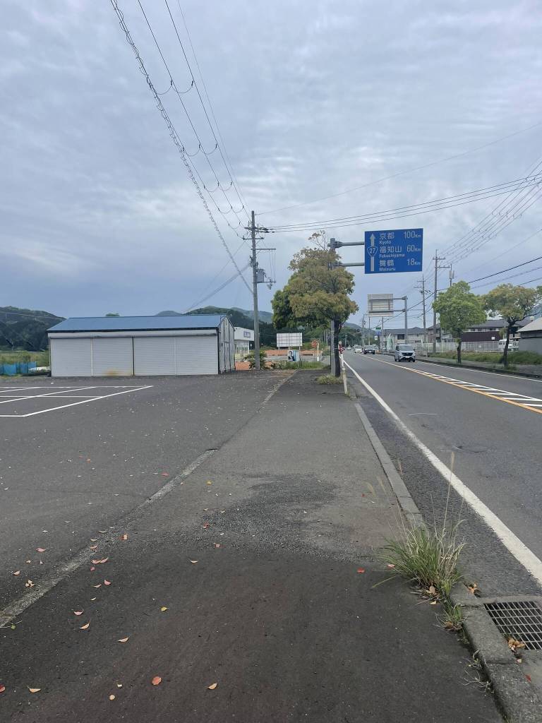 I wake up early the next day, but still too late to catch the first train to Maizuru. So I have a small breakfast with ocean view and then make my way to the National Route 27, where I hope to find a ride to Nishi-Maizuru Station. I soon find the perfect hitchhiking spot – an entrance to a parking lot with plenty of space to stop. And the sign announcing the upcoming towns is helpful tol, since I don‘t have cardboard to write my destination on.