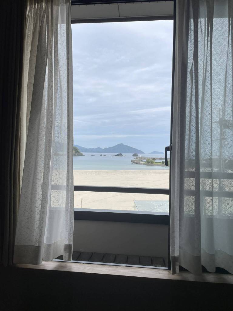 As the sun disappears behind the clouds, I head to the local convenience store to buy a bento for dinner and then return to the ryokan. I quickly eat, before venturing to the top floor of the building, where I have the public bath completely to myself. After a relaxing soak, I take advantage of my room’s small balcony and enjoy the soothing sound of the waves breaking on the shore.