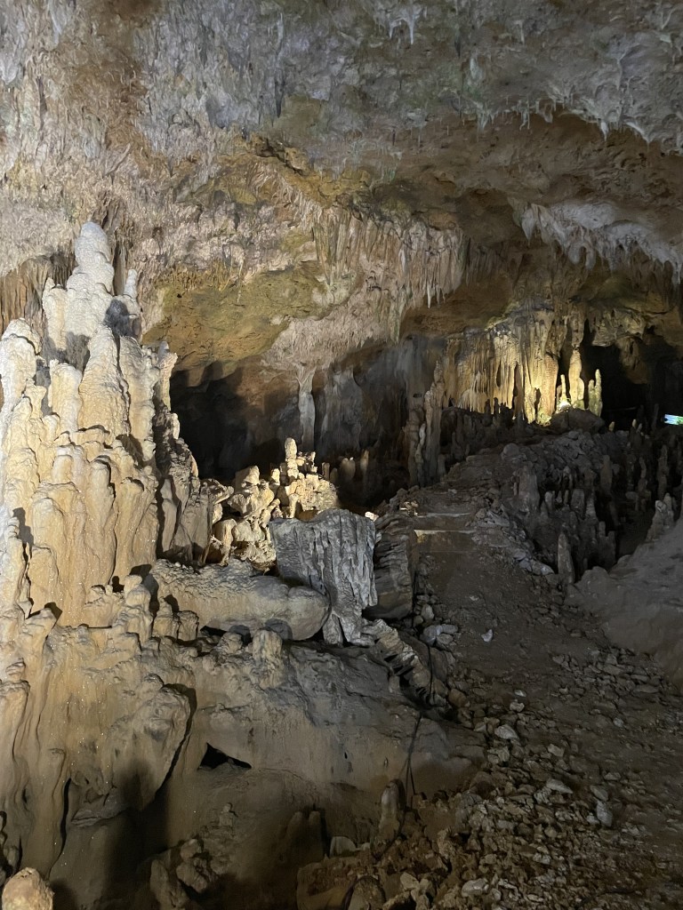The following morning, Mima-san gives us a ride to a private parking lot on the outskirts of the city. There we pick up a pink Kei car in the most informal way possible, before heading to the Ishigaki Stalactite Cave. We explore the dimly lit caves with rock formations named after Ghibli characters for a while. Then we head north, to the famous Kabira Bay. We park the car in front of a minimart and venture to the sandy beach with crystal-clear water. Once we have enough of the sightseeing spot, we continue the trip along the coast. We enjoy Japanese curry and juice on at a restaurant with sea view and imagine what it would be like to live here. There sure are worse places to be. But our excursion isn’t over yet.