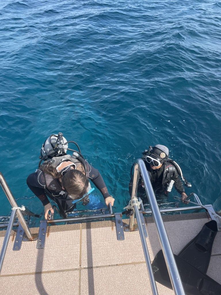 And so we descend to about 15 meters. I barely have time to adjust to the depths, when the instructor points at me and I see a striped sea snake in his hand. He lets go, and the animal quickly swims away from us. But only a few moments later, he catches another one. Luckily, they seem to be quite eager to get away, so I don’t worry too much about being bitten by them. However, once we are back on the boat, the dive master shows me his hand, which is clearly swollen. So they are biting and definitely venomous. After my first dive ends, I anxiously wait for Sinthia and Julie to surface. Fortunately, they did not see any snakes and had a fantastic time.