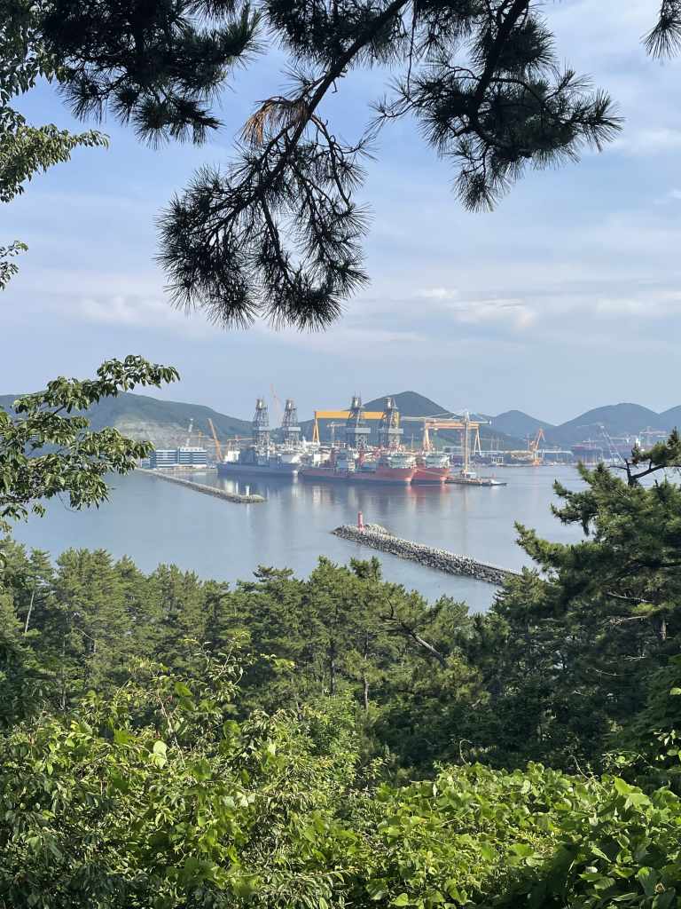 I choose the destination for my second month working remotely for a Japanese company based on the availability on Airbnb. I’m looking for a studio apartment close to the sea when finally a lady in Okpo on Geoje Island accepts my request. A few weeks later, upon returning to Korea from Taiwan, I take the southbound highway bus from Seoul. I get off at the main bus terminal in Geoje City and transfer to a local commuter bus for the last stretch across the island. During the drive, I think to myself that it’s larger than I expected. But the bus system and landscapes remind me of Jeju island, so I immediately sense some familiarity.