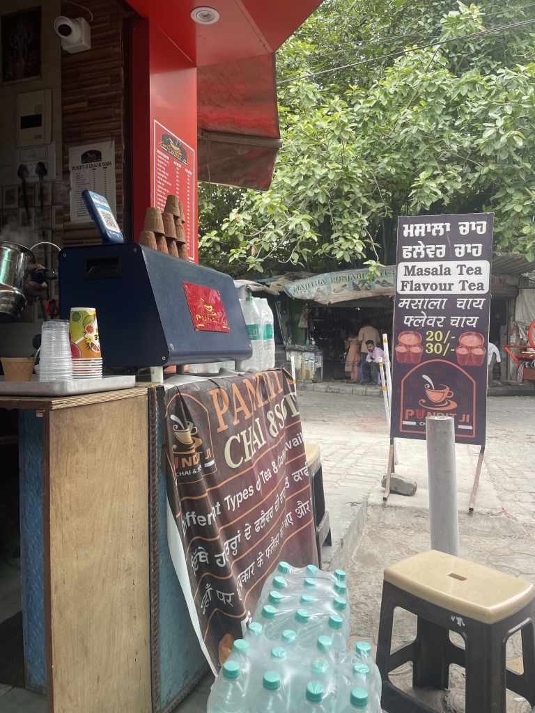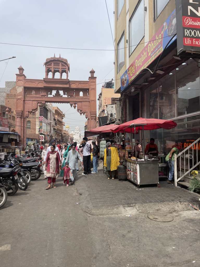 My exploration of the capital of the Indian part of Punjab starts with a walk from my accommodation close to the train station to the central area around the famous Golden Temple. But before I head to the most important religious site in Sikhism, I stop at a restaurant with a high rating on Google Maps to try the region’s specialty: Kulcha. I order a refreshing Lassi to go with the flatbread stuffed with potatoes. The cold drink is great to combat the heat of the summer day, but the size is much larger than I expected. Somehow I still manage to finish it and then I finally stroll down the small pedestrian alley (might be the only one in all of India) lined with small shops. It’s quite easy to tell apart the temple grounds from the surrounding neighbourhoods. After all, it’s covered in spotless marble tiles set against the mud-coloured streets of the city.