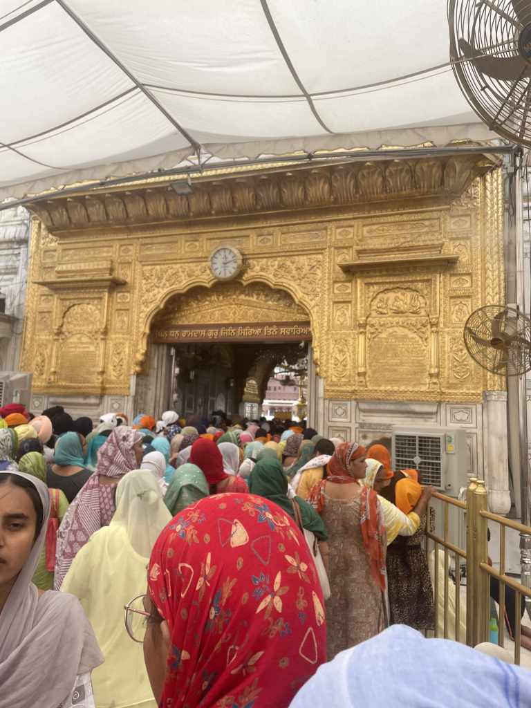 I notice that there are two queues. One for women only and another one where anyone can wait for their turn. Due to the large number of people and no other foreigners in sight, I choose the women’s lane. In the beginning, I just focus on finding the spots closest to the fans blowing at impressive speed. Everyone around me is happily chattering, despite the heat which feels even more intense due to the many bodies closeby. But suddenly I realize that I seem to have much more space around me than everyone else. This is also when I notice a lot of girls staring at me. Finally, one girl musters up the courage to ask me where I’m from. With the invisible barrier broken, other people start to take turns talking to me and make sure that I always have some water (which is handed out for free too!). As we move forward in the queue, a young Punjabi girl called Jess tells me about her studies and recent trips around northern India. We exchange Instagram info, but then are separated by the people in charge of crowd management.