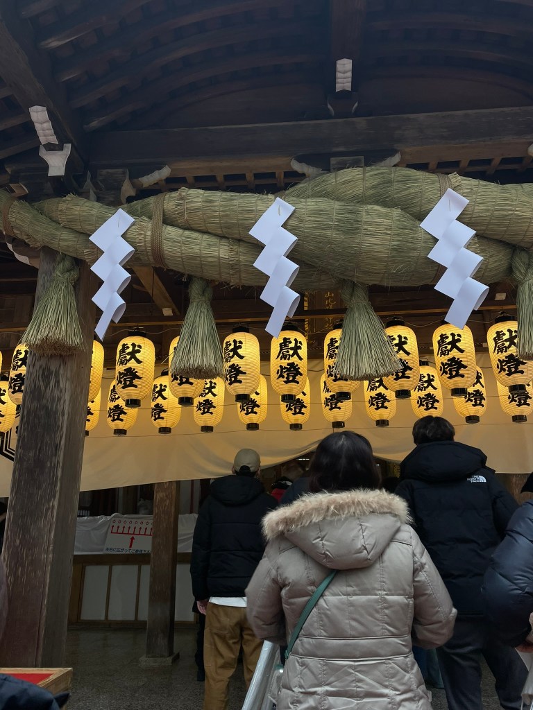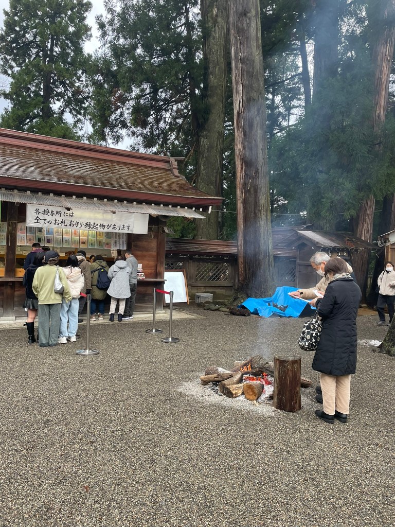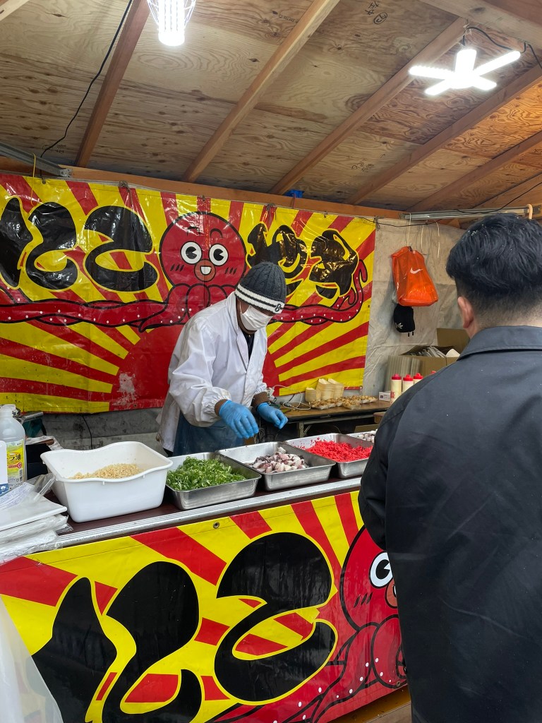 So I keep the fortune in my bag, planning to translate it later on today. Marie isn’t as lucky and after quickly reading through the different sections, ties the unlucky fortune to the designated structure on the temple grounds to leave the bad luck behind. As we wander across the Shrine’s premises, which are covered in high pine trees, snow starts to fall. The scenery looks like it’s straight out of a Christmas movie. In one place they even lit a small bonfire at which people are warming their hands. Having completed all our Shrine duties for today, we return to the car park. But before going home, we HAVE TO stop at the food stalls and buy some typical festival snacks. We opt for 2 portions of Takoyaki – the octopus balls – which we devour for breakfast once back in the warm car. When we finally get back home at around 10 am, I fall straight into bed and sleep until the early afternoon. What a great start into the new year.