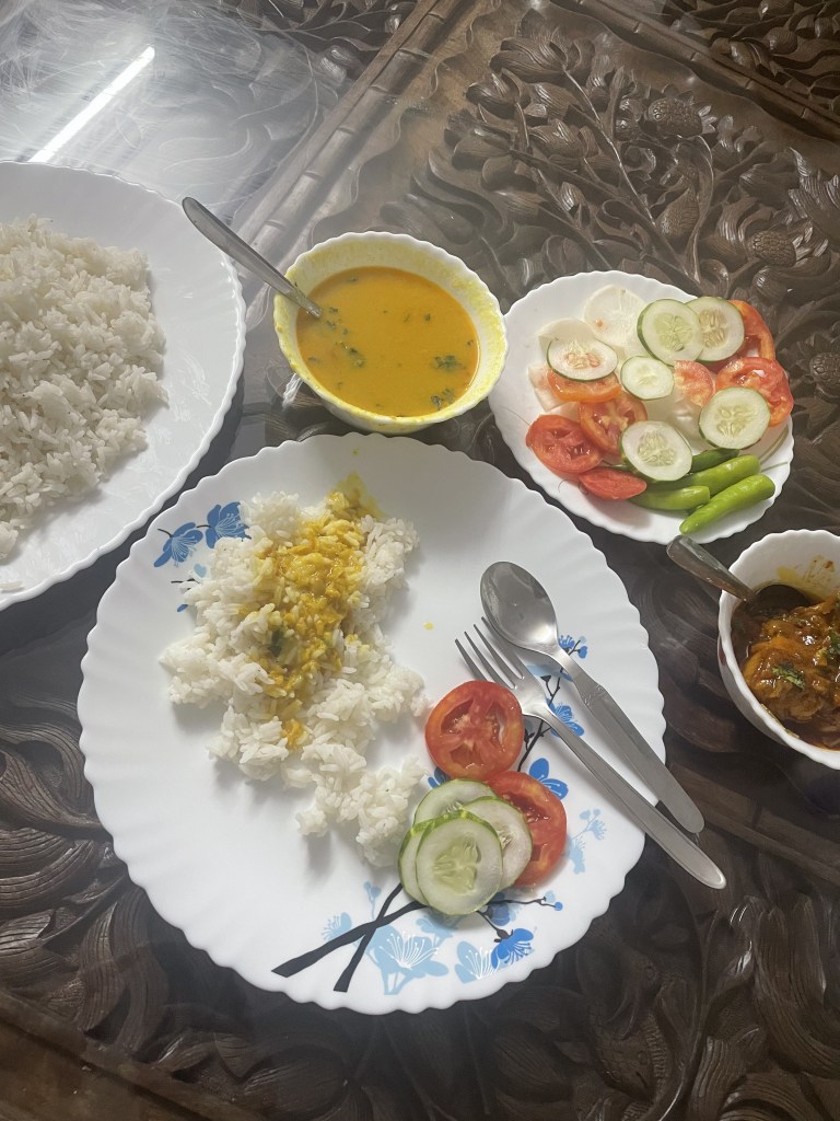 While the heat is much more bearable than in the capital, it’s still over 30°C, and I try my best to stay in the shadow of the many trees. On one occasion, I sit down to read, when some middle school girls come up to me and ask me a few questions in English to practice. In another part of the gardens, one of the many men tending to the roses strikes up a conversation by asking where I’m from. “Ah, Switzerland! Kashmir is quite similar, right?!”, he responds. This is neither the first nor the last time I truthfully reply with: “Yes, the landscape is very similar. We just grow wheat instead of rice.” In the afternoon, I stroll along the lake for a while and treat myself to ice cream at one of the many kiosks. That night I have dinner on my own. Dino and John had a late lunch and go to bed just after sunset. But before we part ways, we agree to meet for the next day’s excursion at 7am.