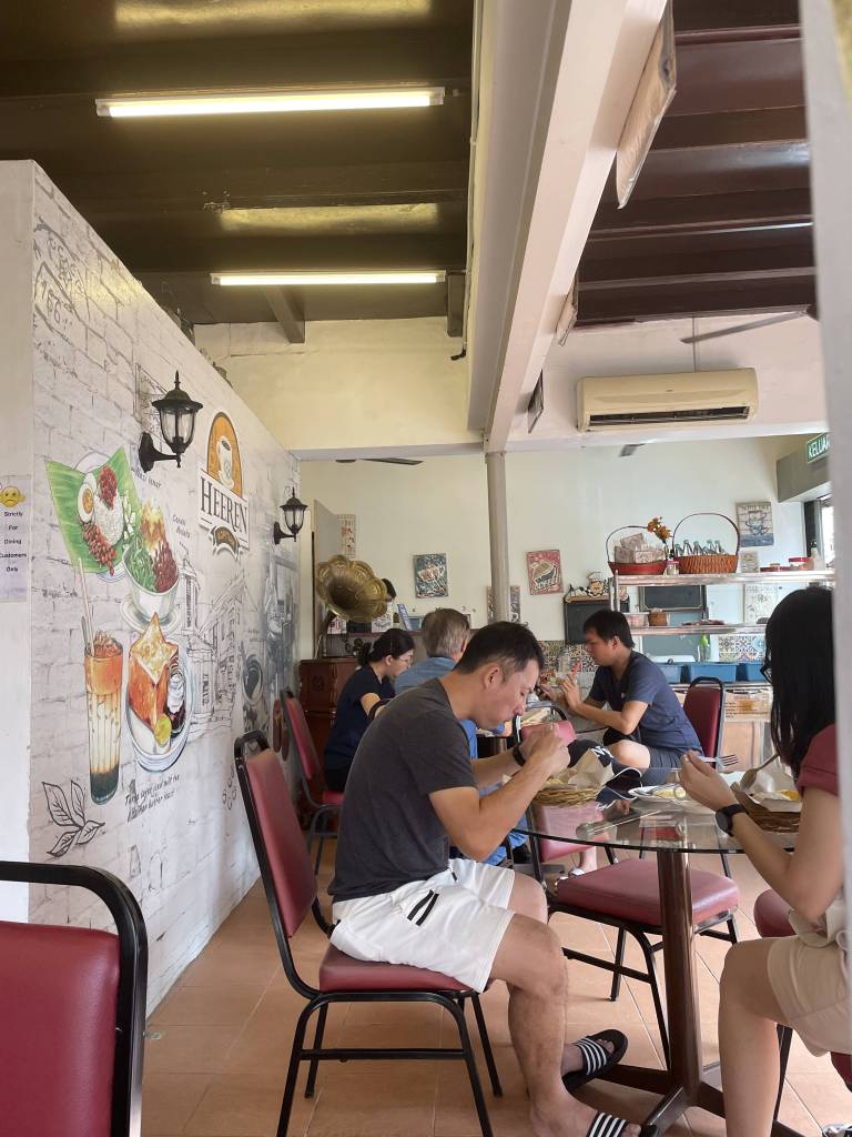 That night I return to my hostel rather early, exhausted from the weather, the travelling and all the impressions of the day. The next morning I wake up refreshed and full of energy. So off I am to the local Kopitiam, where I have Nasi Lemak for breakfast. I then return to the guesthouse to pick up my book which I forgot to pack before. Only to run into the 2 people staying next to me. They introduce themselves as Alice from Italy and Pis from Malaysia and ask if I want to join them on their morning walk. Having no other plans, I agree and off we go. We have an interesting conversation about Islam and its ties with the many different cultures of the countries where the religion is practiced. Pis shares the Malaysian perspective with us over my second breakfast of the day. The 2 others haven’t eaten yet and indulge in fried noodles and rice, while I stick to a Malaysian milk tea. On the way back to the old town district, we stop at Pis’ friends’ house. His cat recently gave birth to a whole bunch of kittens which we spend some time playing with before going home.
